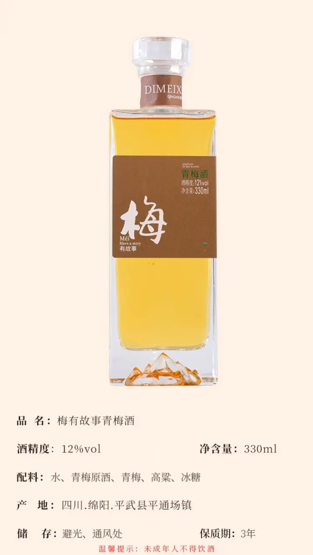 【梅有故事】四川特产平武滴梅香果酒(西柚味) 女士低度甜酒 绵阳特色青梅酒过年送礼佳品