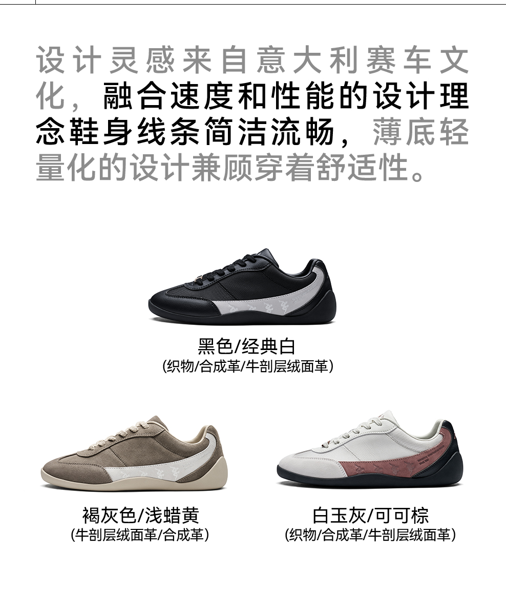 Kappa卡帕背靠背赛车德训男鞋新款复古运动鞋情侣款薄底慢跑鞋女K0FY5CC60