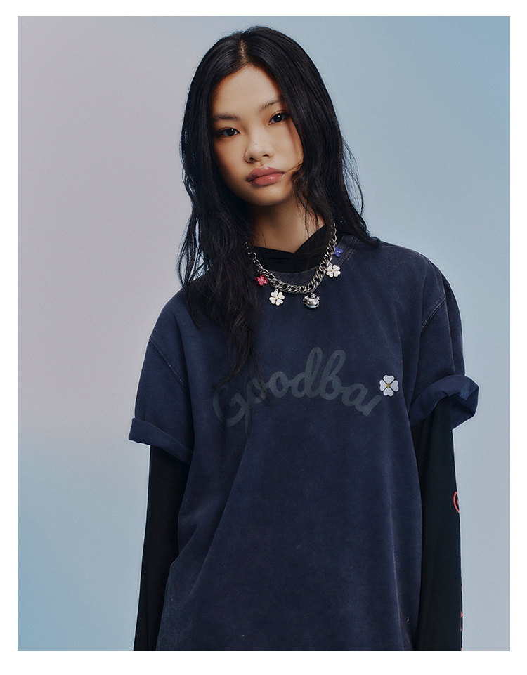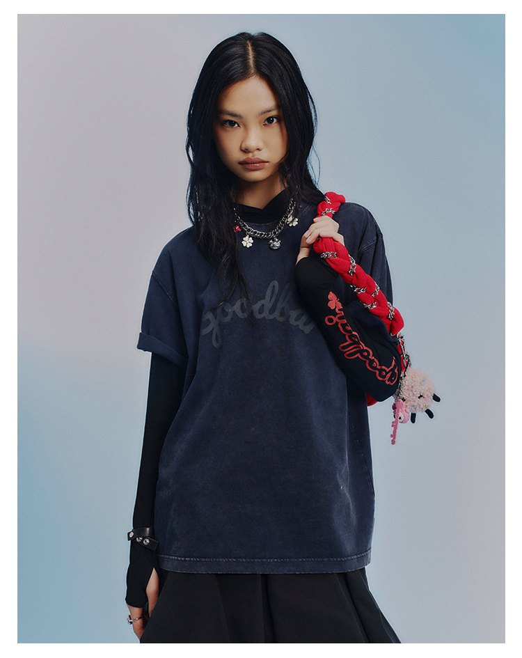 GOODBAI GOODEES 四叶草印花logo做旧水洗oversizeT恤