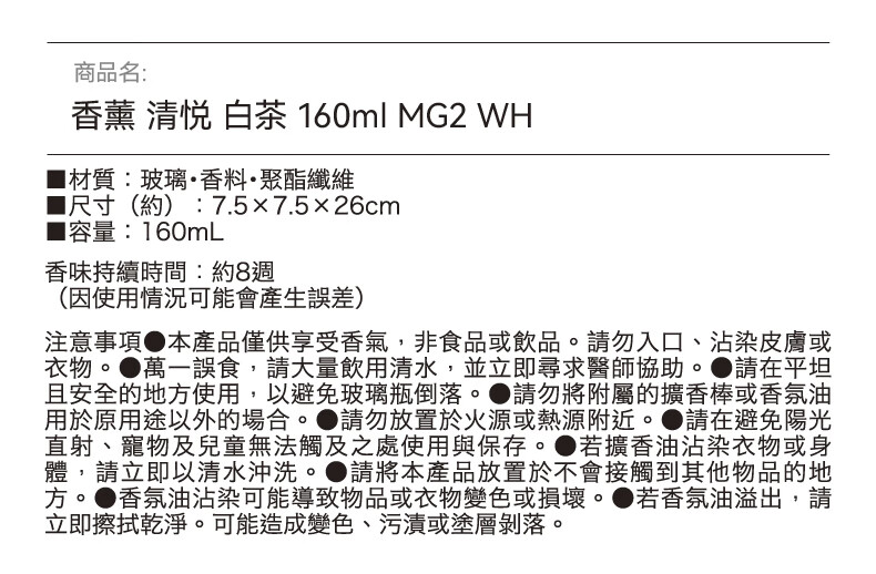 藤条无火室内扩香房间卧室卫生间茶味香薰清悦160ml