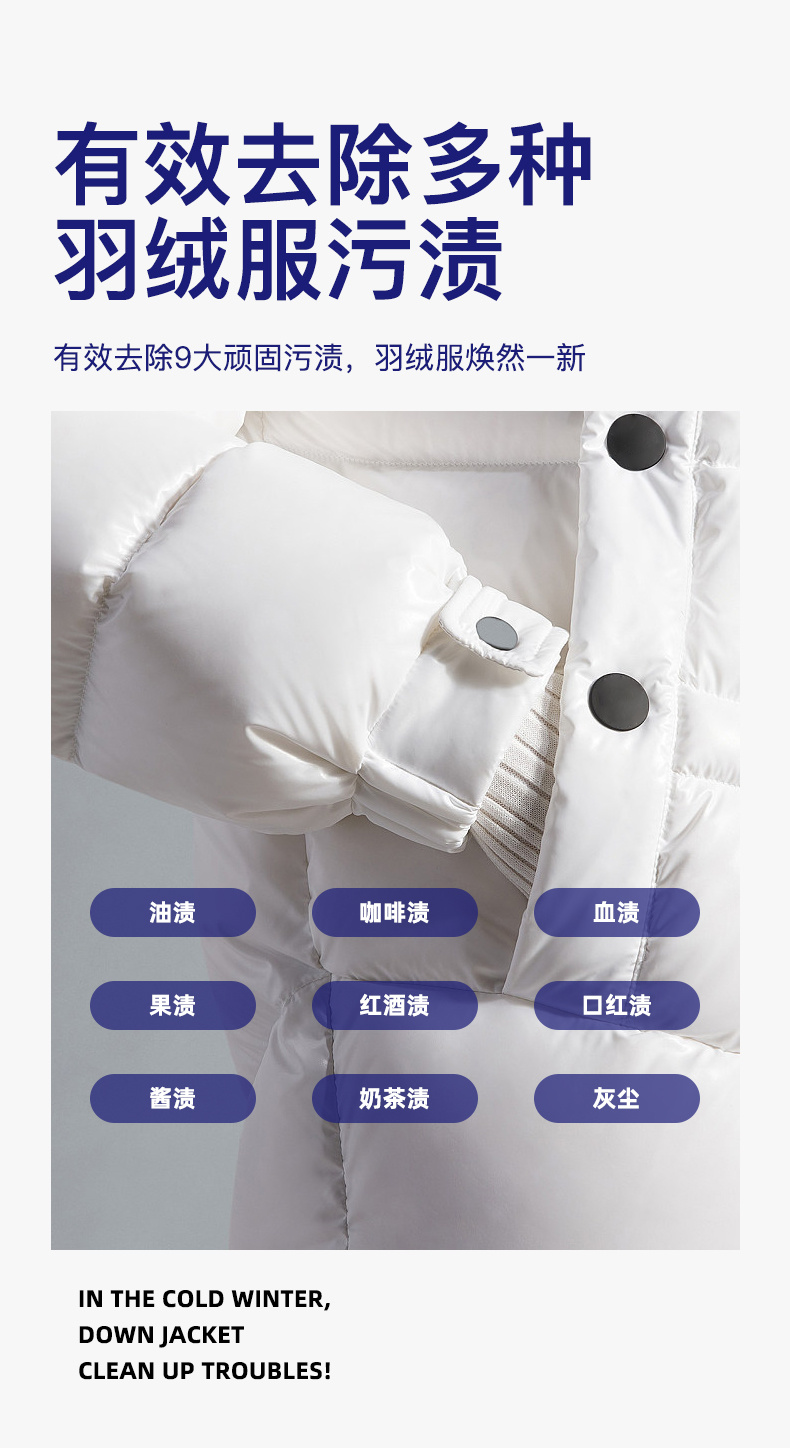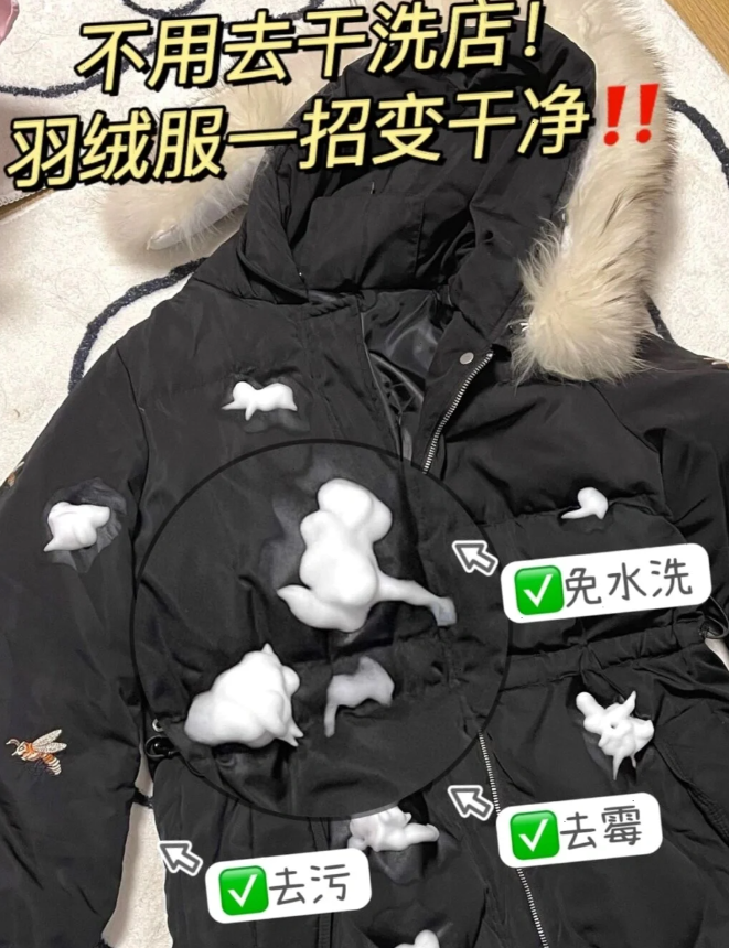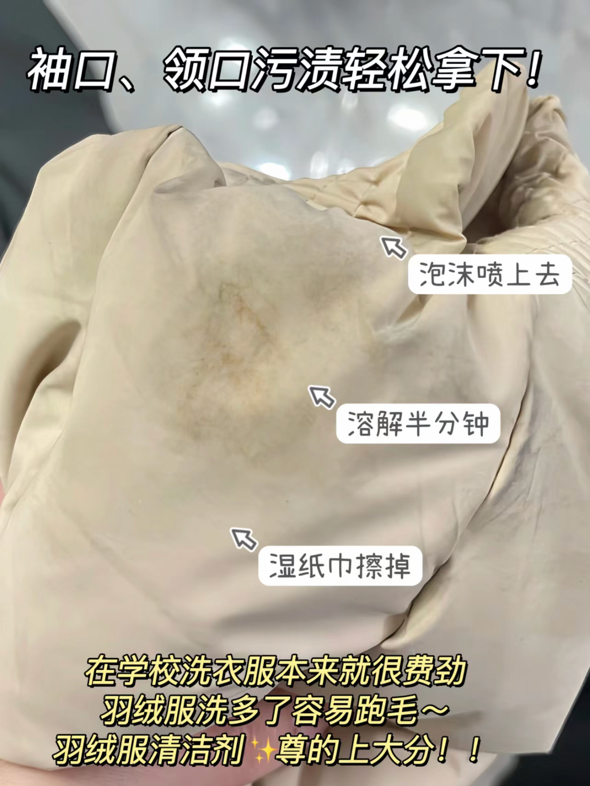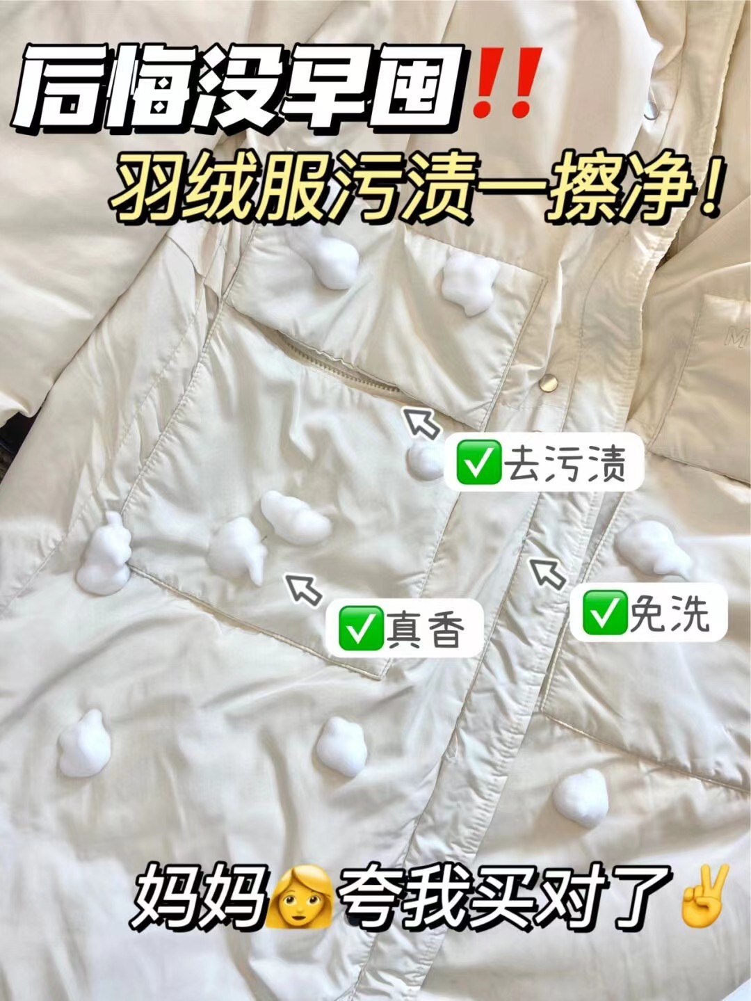 ❄每年冬天,羽绒服是大部分宝子们人手一件的抗寒神器,简单又舒适!好穿又好搭! 不过这么好的抗寒神器也有确定那就是:不耐脏!不好洗!❌ 因为羽绒服的特殊性没办法做到经常清洗 长期穿着,袖口很容易弄脏变黑⚠ 吃个饭很容易不小心溅到油污⚠ 就连化个妆稍不注意也会蹭上粉底和口红⚠ 穿出去掉价,还让别人误会你不爱卫生🙊