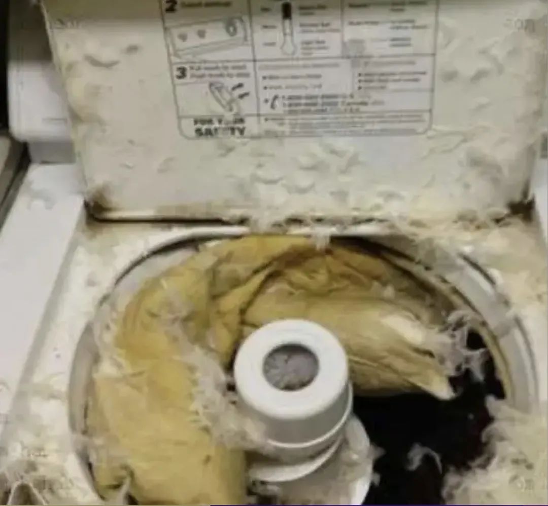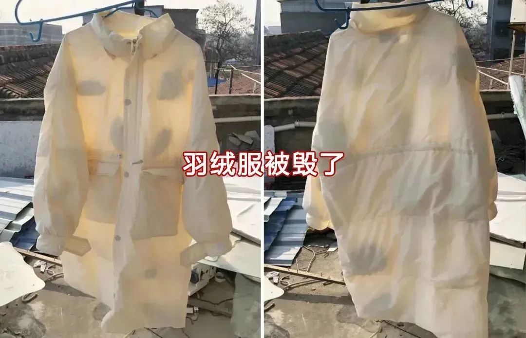 而且由于羽绒服的特殊性,它是不能机洗的❌❌❌ 洗衣机在旋转时,羽绒服内气体无法释放,羽绒服与洗衣机内壁可能产生静电,当静电累积到临界点就有可能会产生爆炸,造成危险!!!