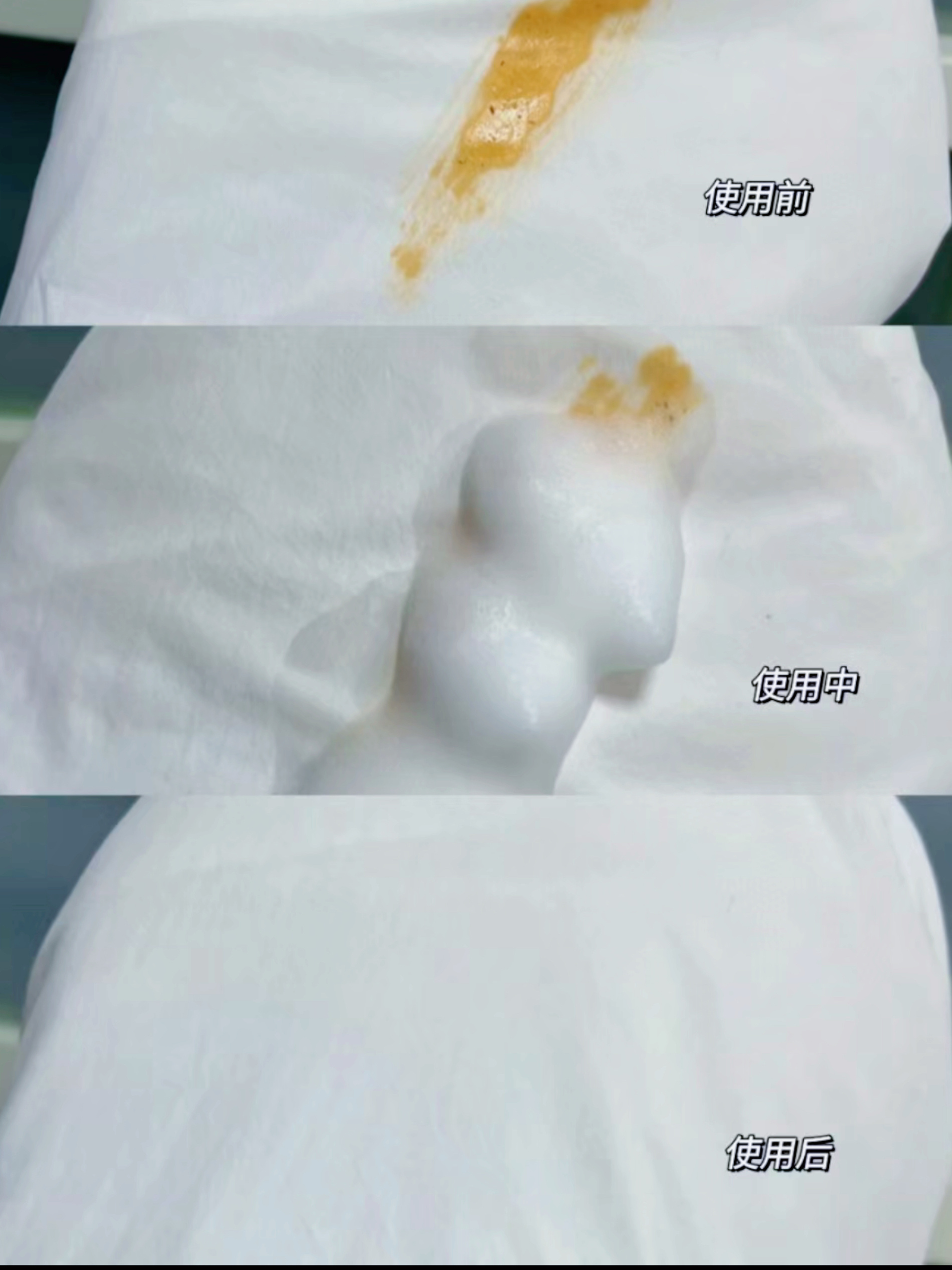👀记得第一次用的时候,真的惊艳到我了!!! 简真方便了,去各种污渍都非常快速、有效!😱 根据不需要复杂的方法 清洁剂碰出是绵密的白色泡泡,用自带的小刷头,或海绵轻轻来回擦拭几次就干干净净了,省时又省力~