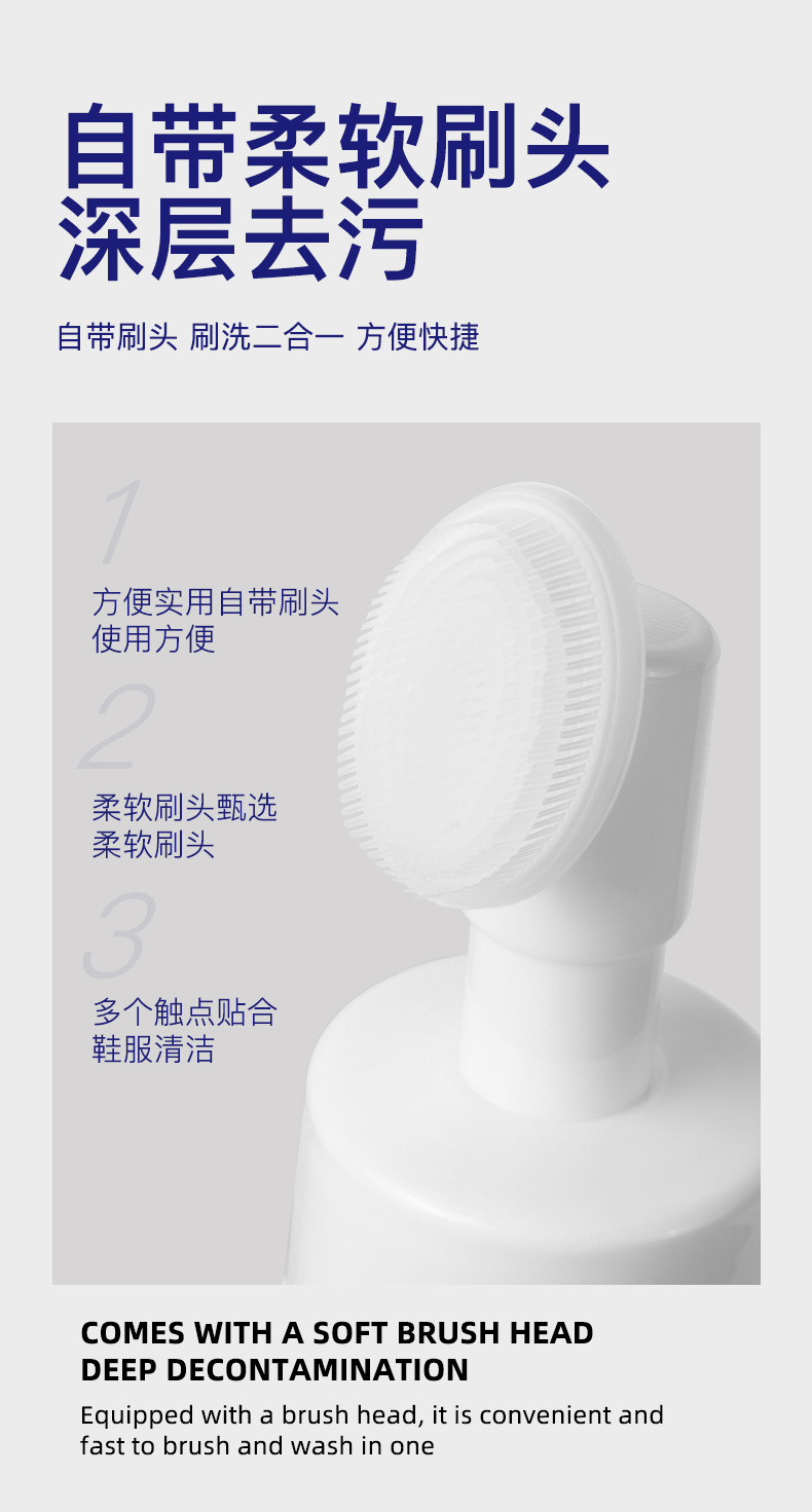 🤲使用方法: 1️⃣使用前摇匀本品 2️⃣将本品刷头按出泡沫后涂抹在污渍处,自带刷头轻轻擦拭,再用干净的湿布或纸巾擦拭干净即可 👉严重污渍也重复以上步骤直至清洁干净