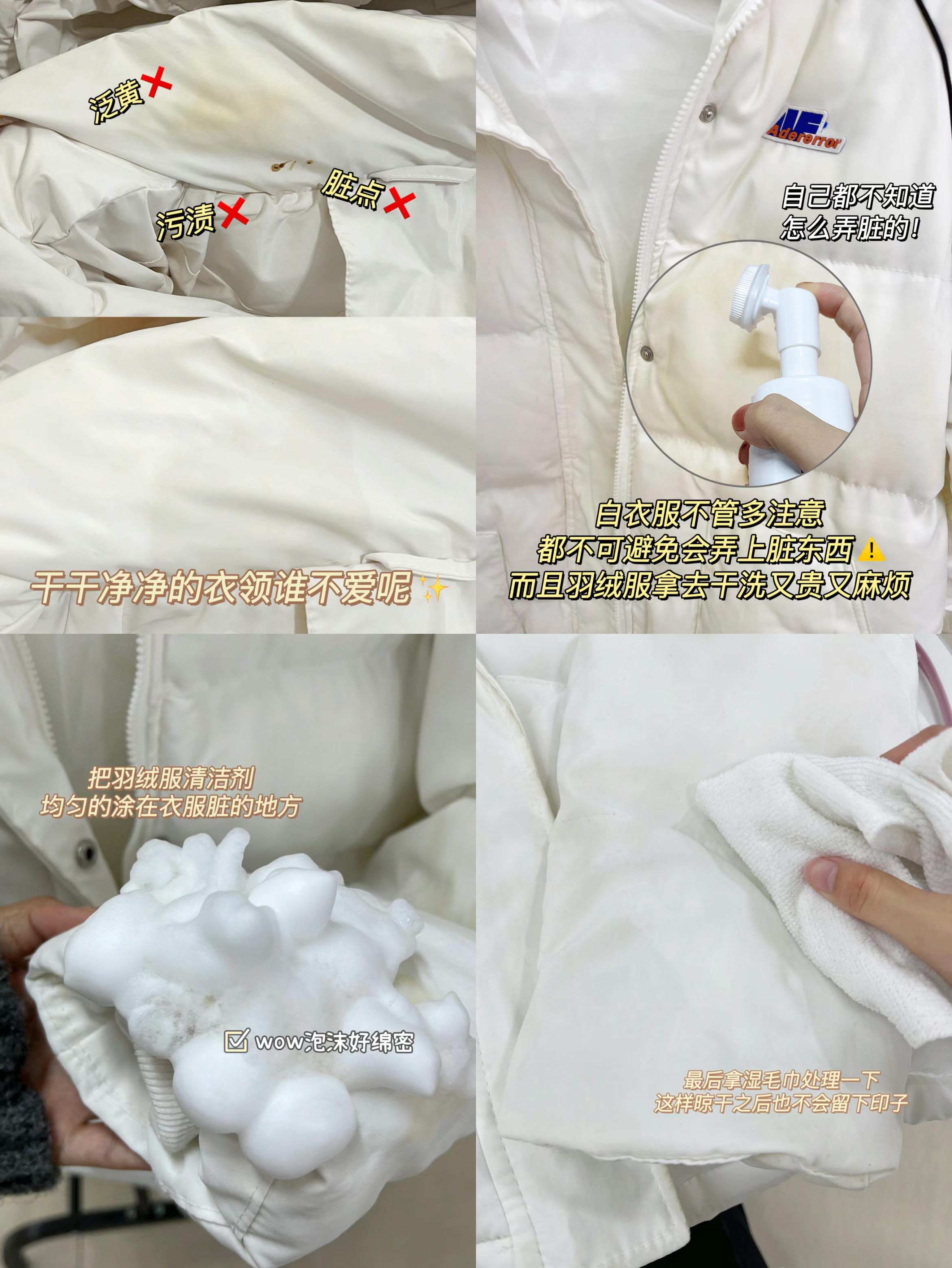 其实,很多时候我们为了一小块污渍去洗一整件羽绒服~ 今天就把深藏已久的羽绒服清洁好物分享给大家 🆕狮露洁羽绒服清洁慕斯🆕 可以一键解决我们这些烦恼👉喷上后,轻轻一擦 污渍立马就消失不见🤩 用羽绒服清洁剂简单擦擦,2分钟就变得像新买的一样✨