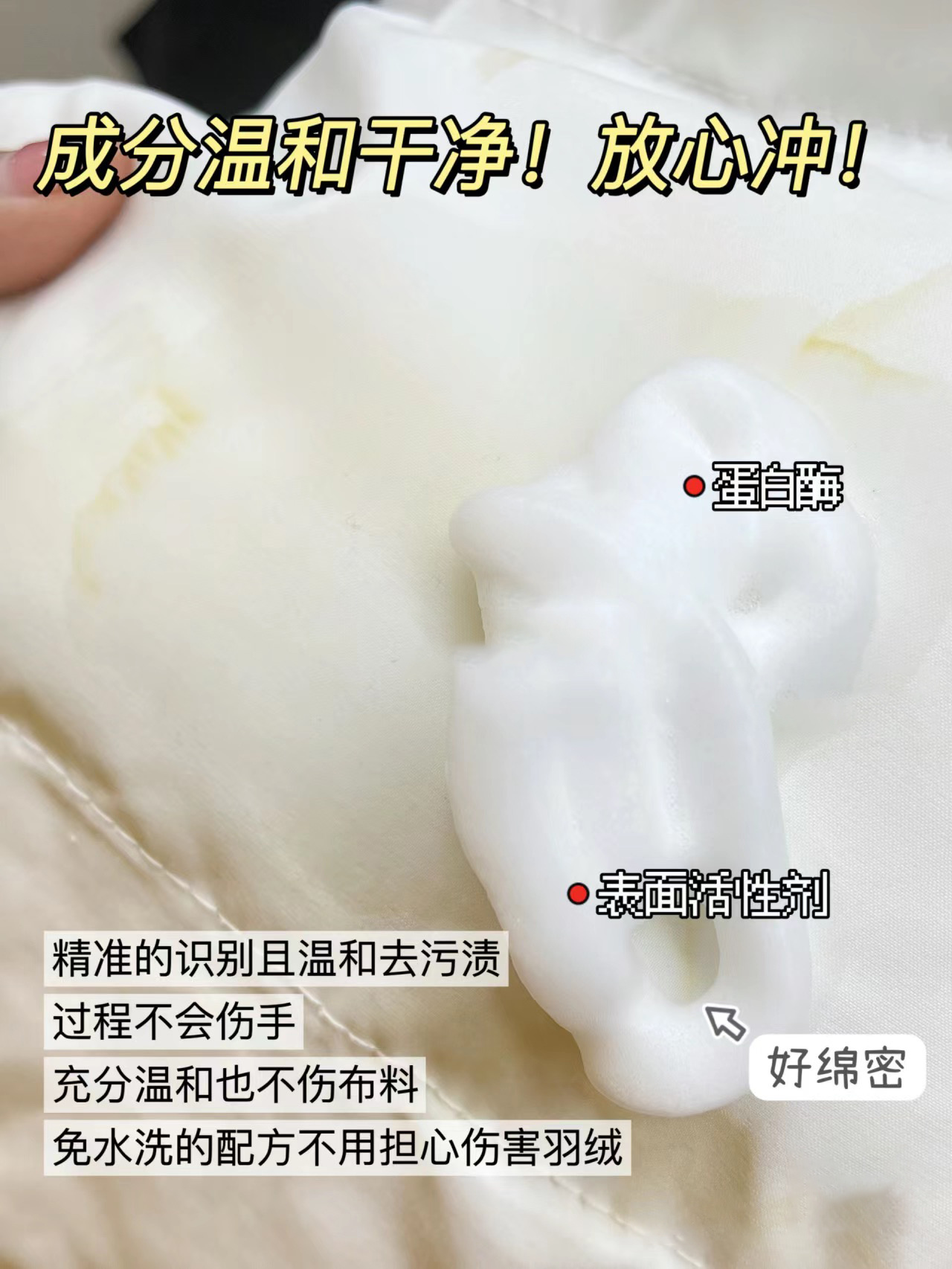 尤其是还在上学住校的宝子们❗一定要冲这个狮露洁的清洁慕斯~ 羽绒服在学校不方便清洗,用它一瓶搞定所有污渍。 成分温和干净不伤手、不伤衣,大胆放心冲
