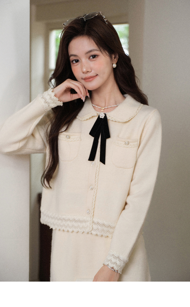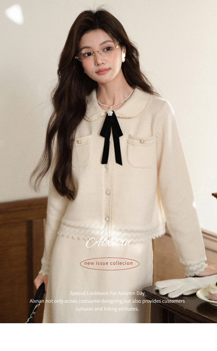鹿向南「无声浪漫」小香风杏色气质外套高级感毛衣开衫上衣女秋季