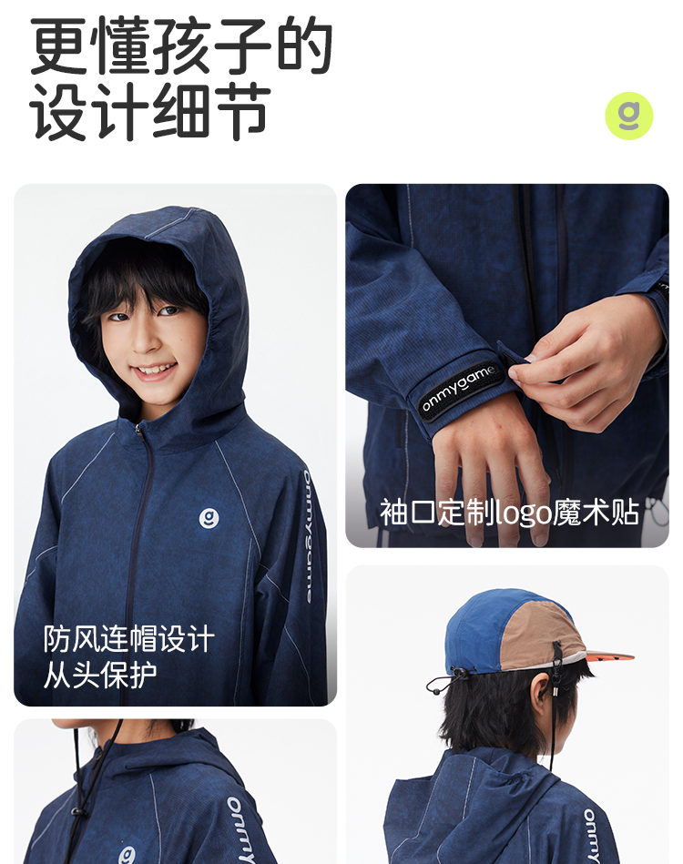 onmygame【山系防泼水】男女童春装儿童连帽外套2025新款软壳外套