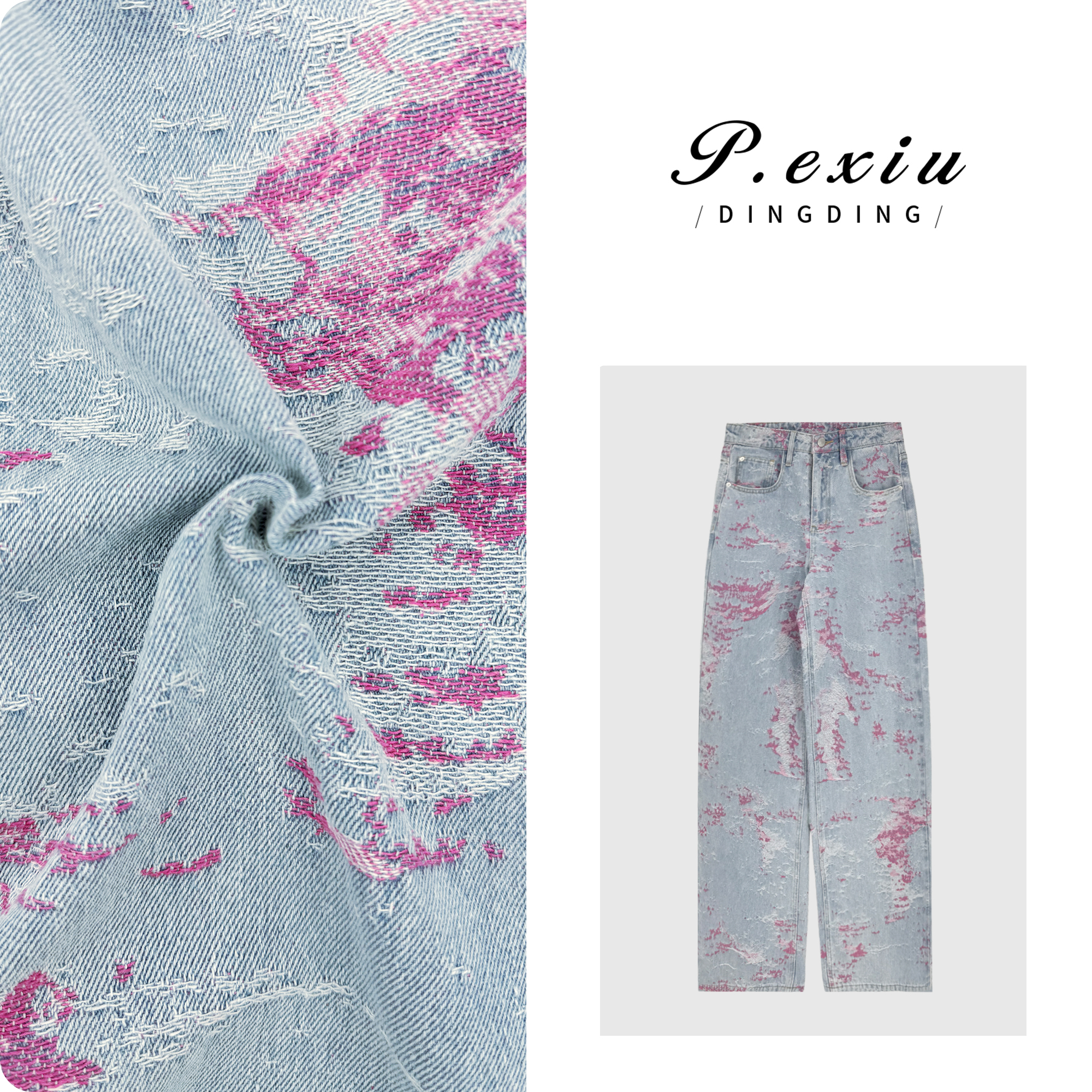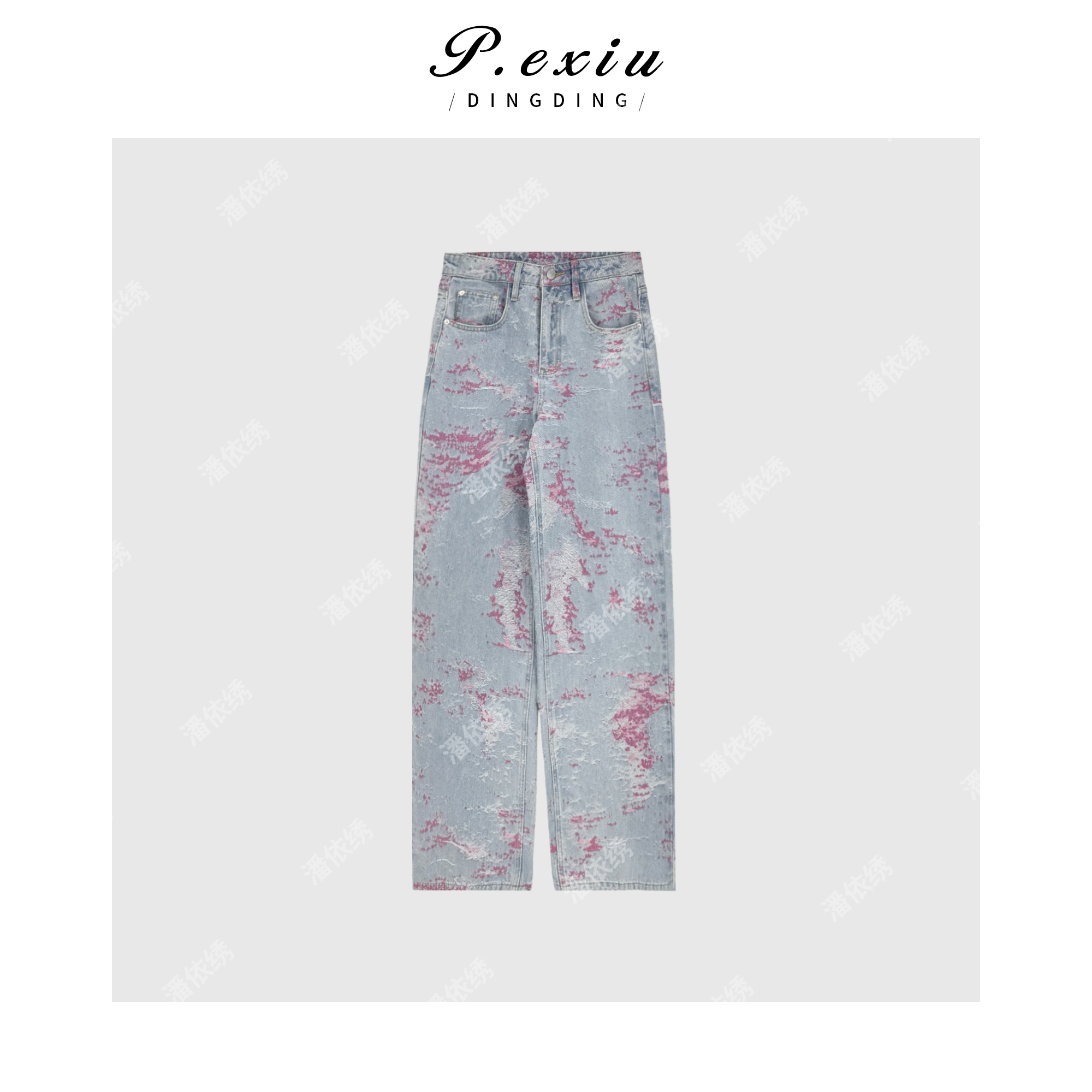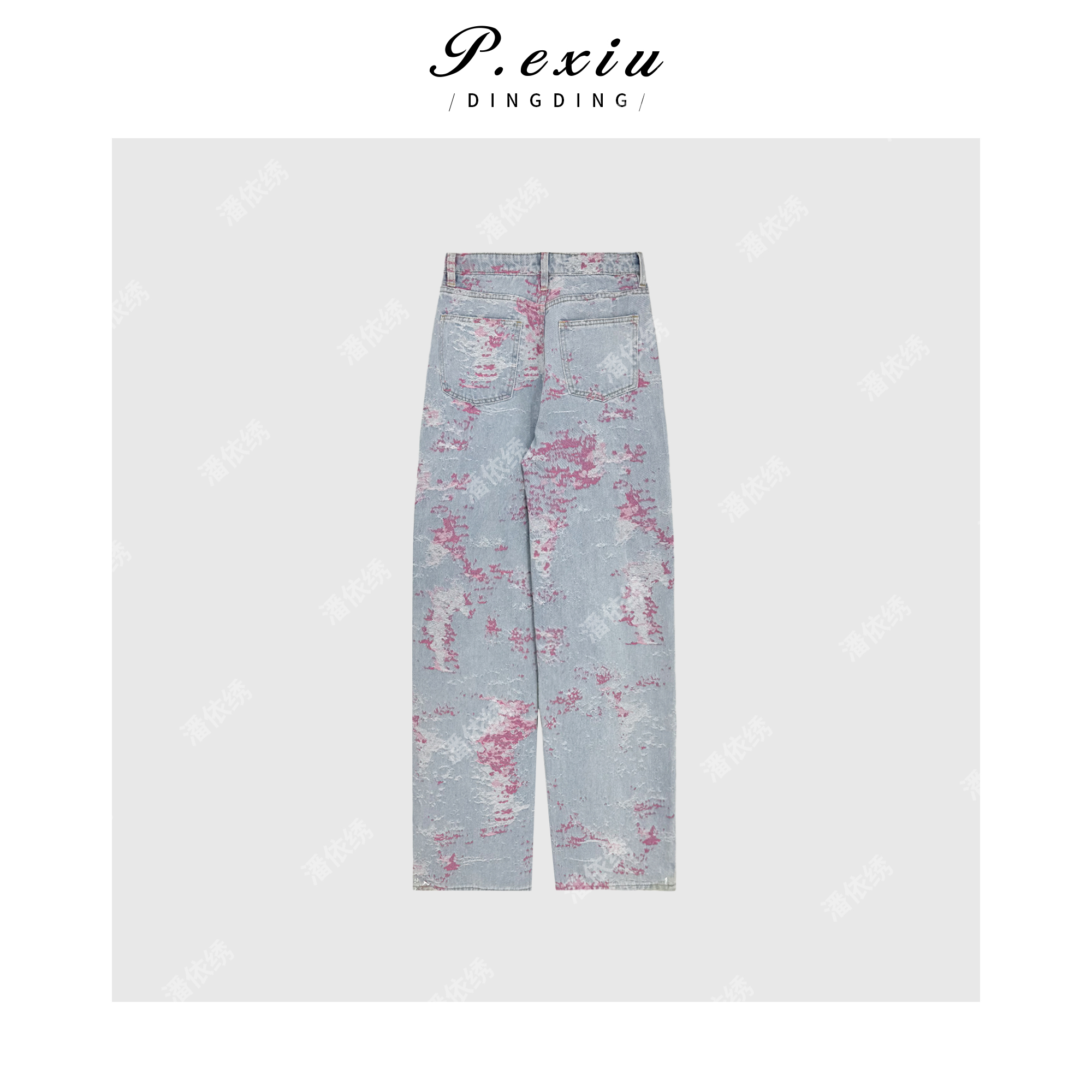 03-4潘依绣丁丁宠粉/潘依绣重工提花磨破做旧高级感直筒牛仔裤 D6517
