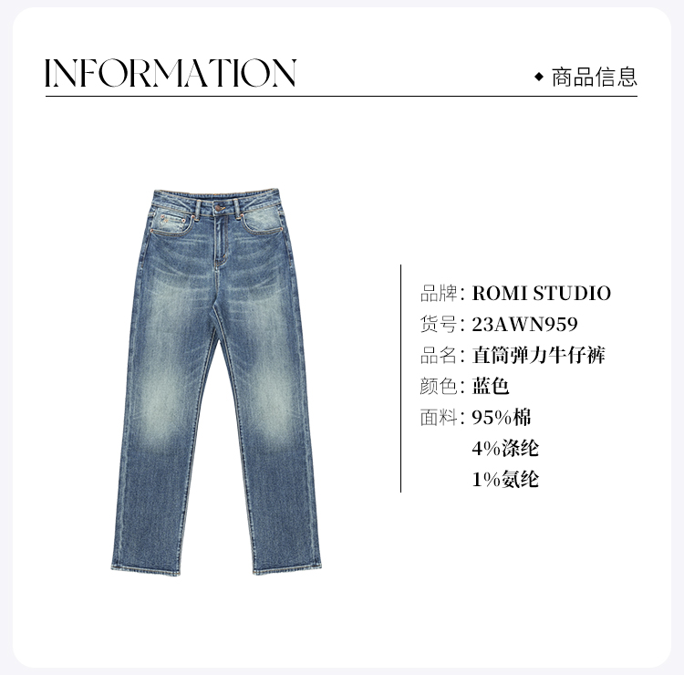 ROMI STUDIO “美式牛仔” 复古洗水纹理感直筒弹力牛仔裤 23AWN959