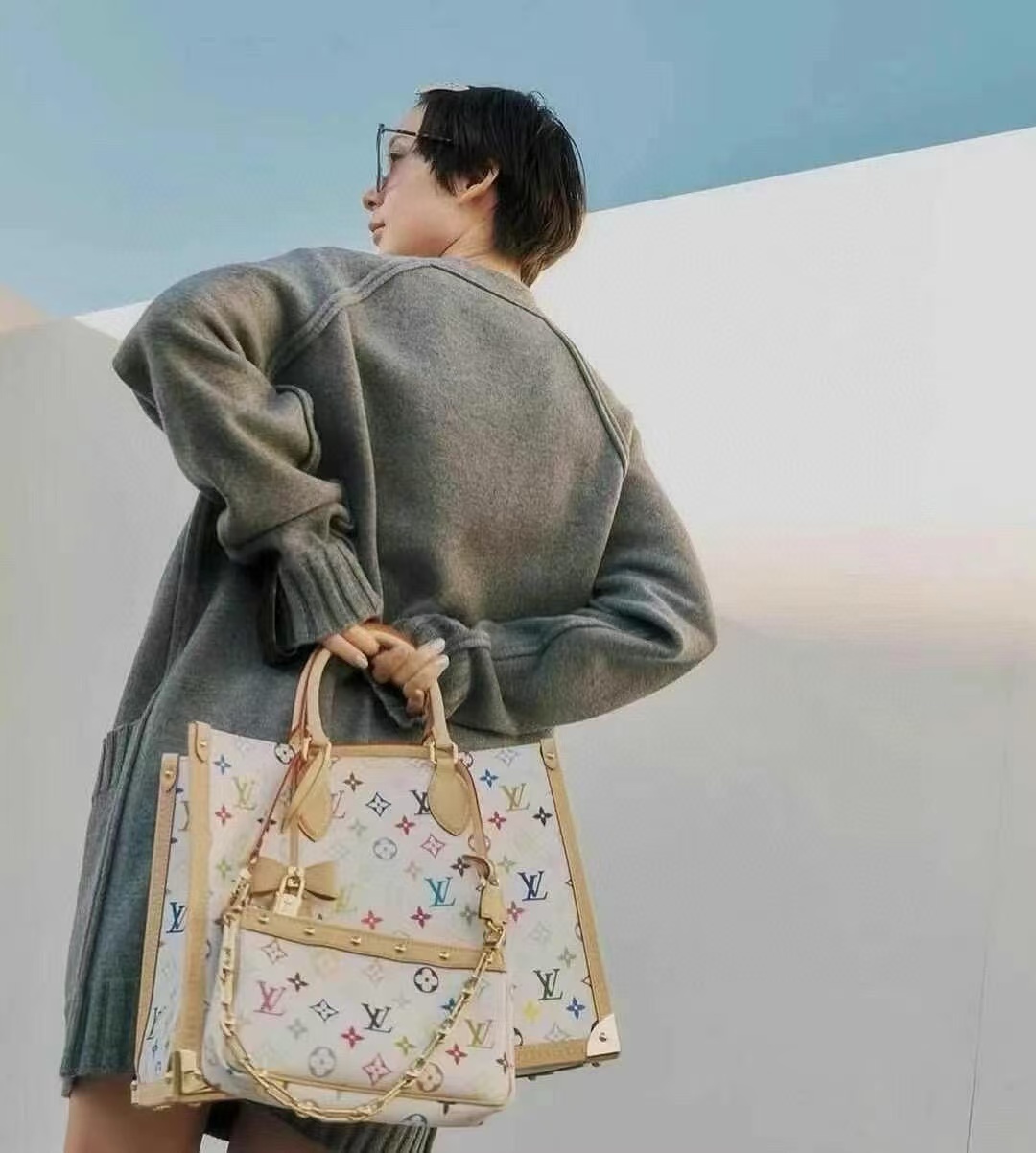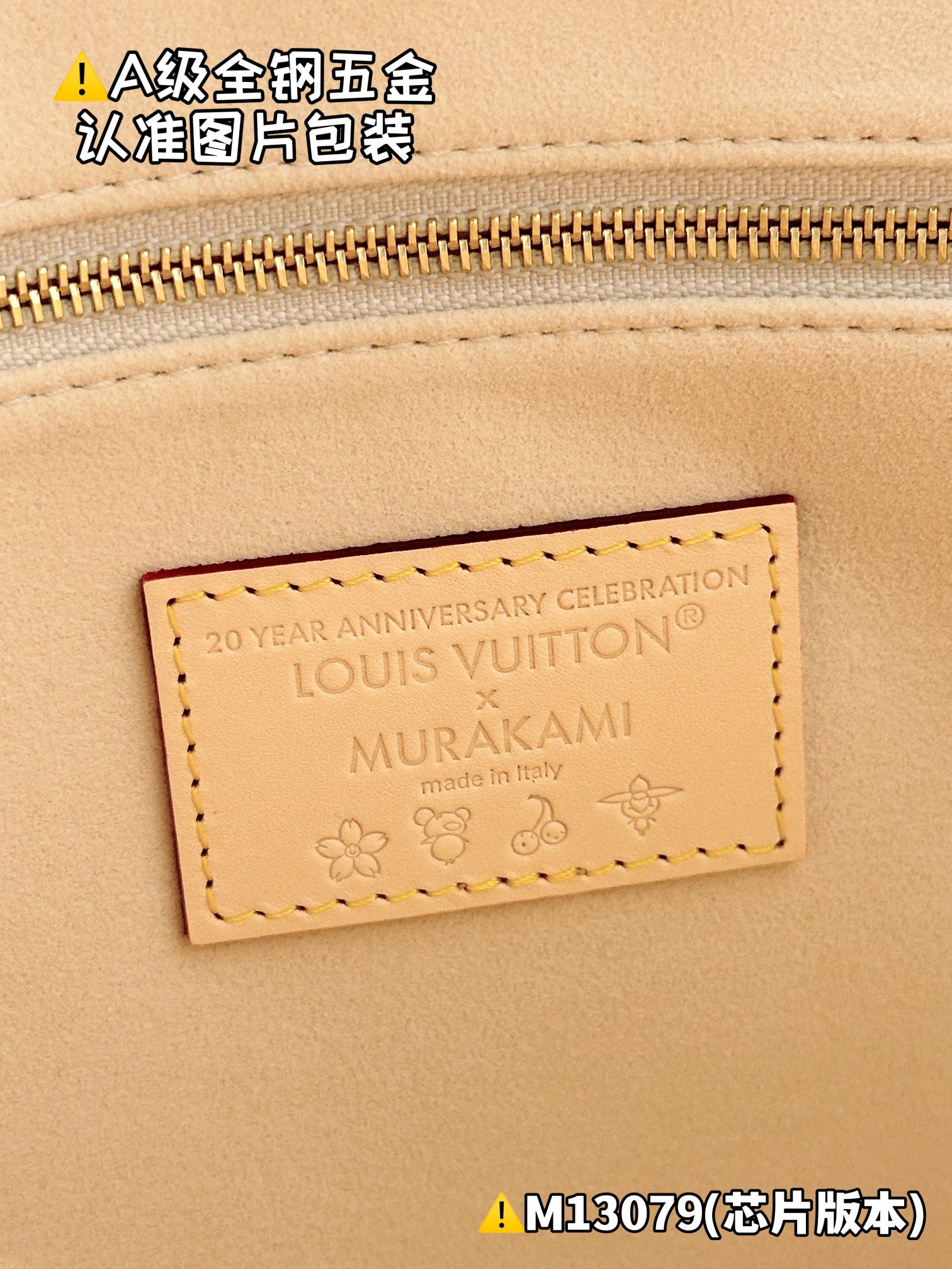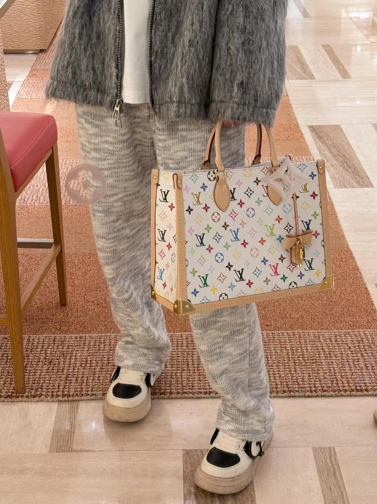 驴家LV x Takashi Murakami村上隆联名款 ONTHEGO字母徽标压印白三彩涂层帆布丛林包托特包Tote包购物袋手提包 中号M13079(JPH)