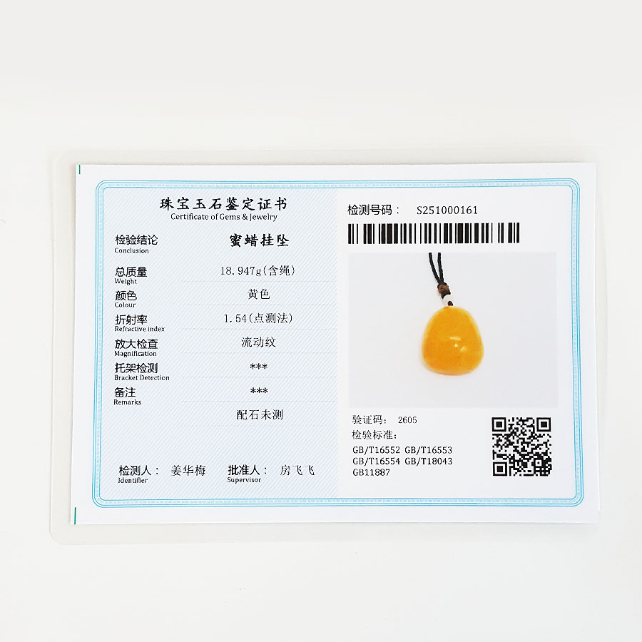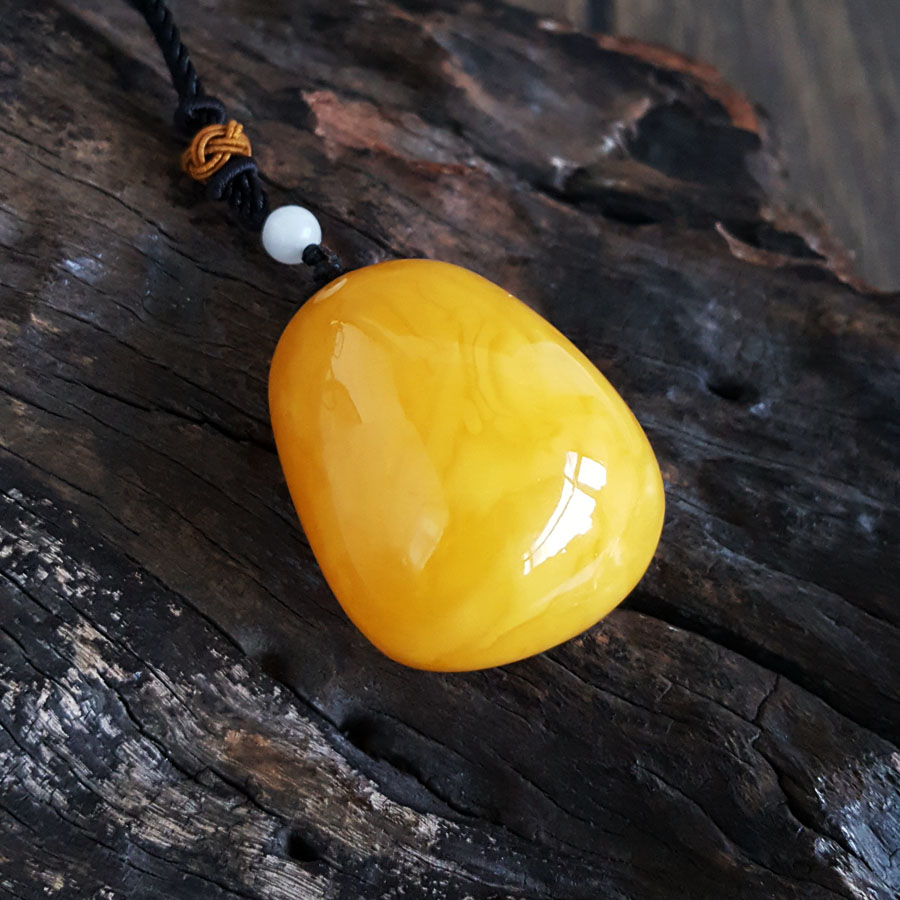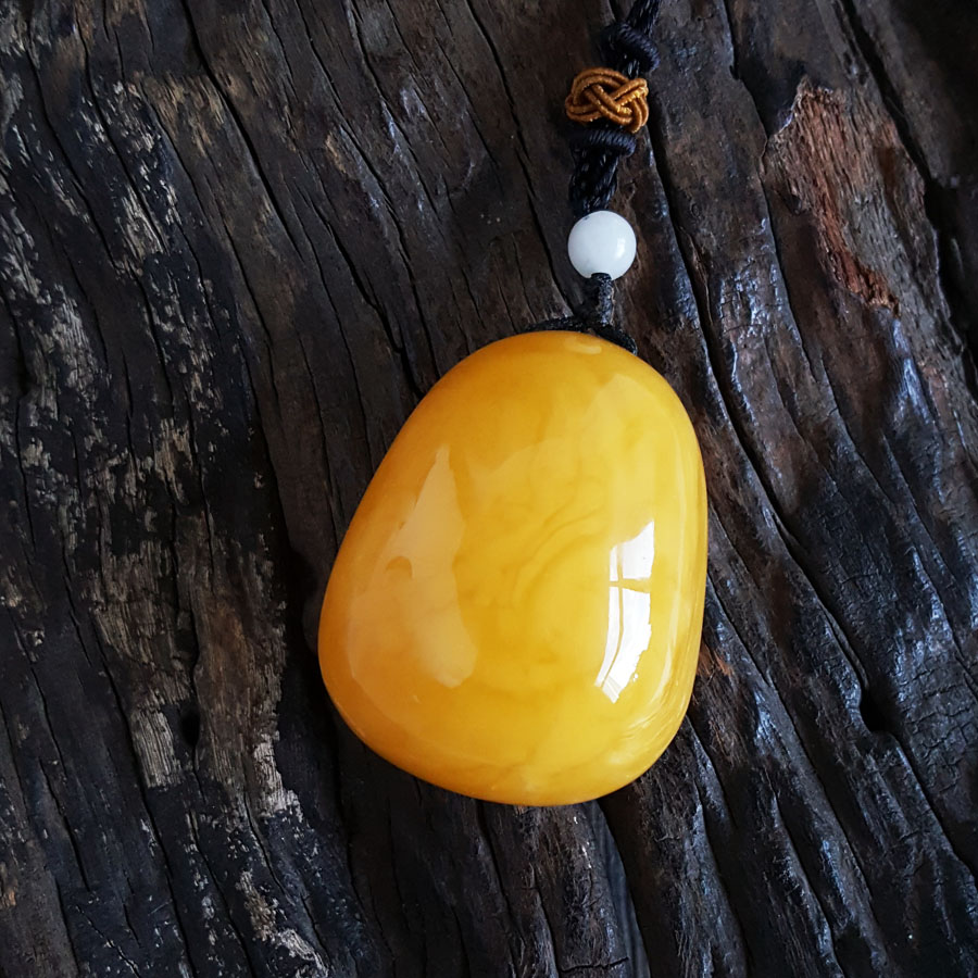 名称 | 天然满蜜鸡油黄无杂裂水滴型蜜蜡吊坠项链 |