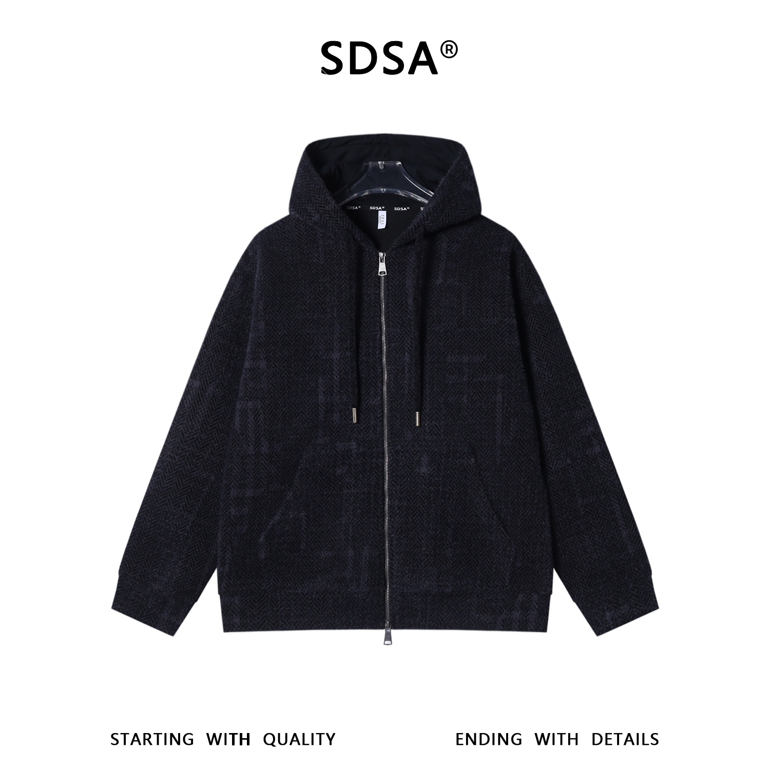 WT309SDSA男士秋冬新款痞帅男装潮牌撞色波浪线绒毛拉链连帽卫衣宽松