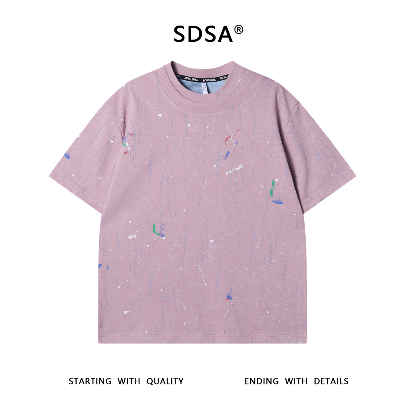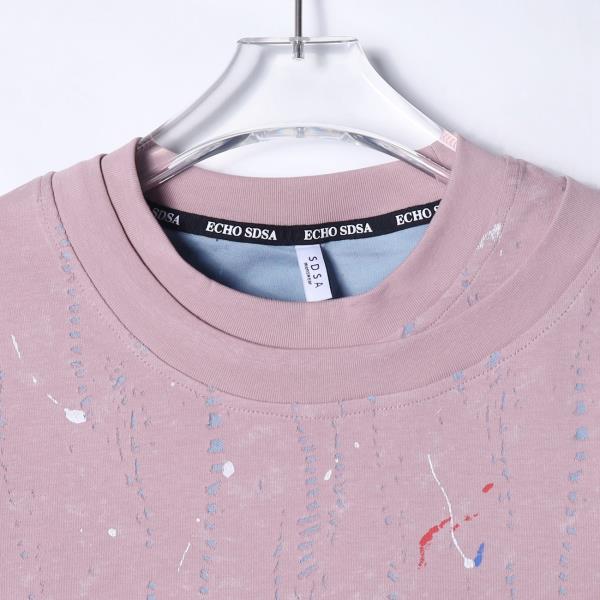 T3311夏季高级感新款韩系割破泼墨双领口短袖T恤休闲时尚宽松套头上衣