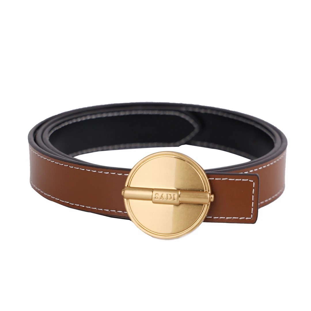 SADI萨迪【月光宝盒】百搭女士圆扣皮带穿搭拼色时尚光面扣腰带SDP80296