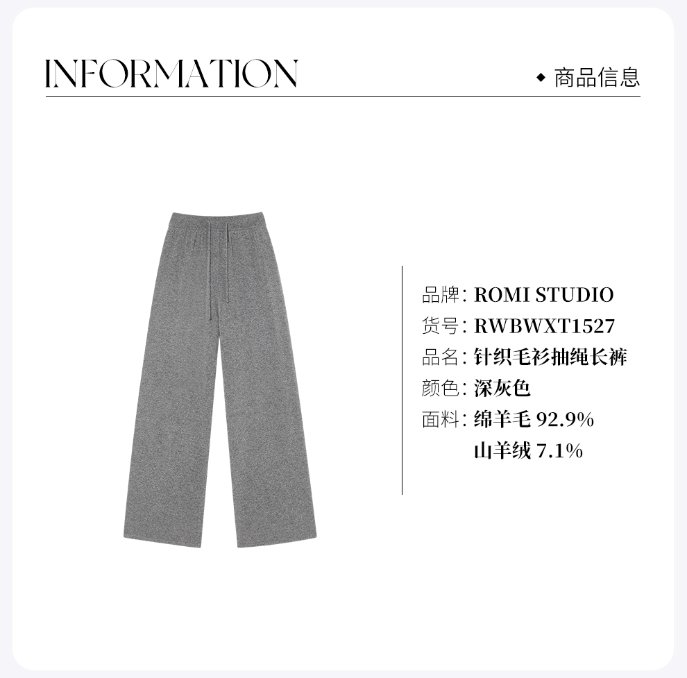 ROMI STUDIO“松弛自在”康赛妮山羊绒绵羊毛宽松休闲裤 RWBWXT1527