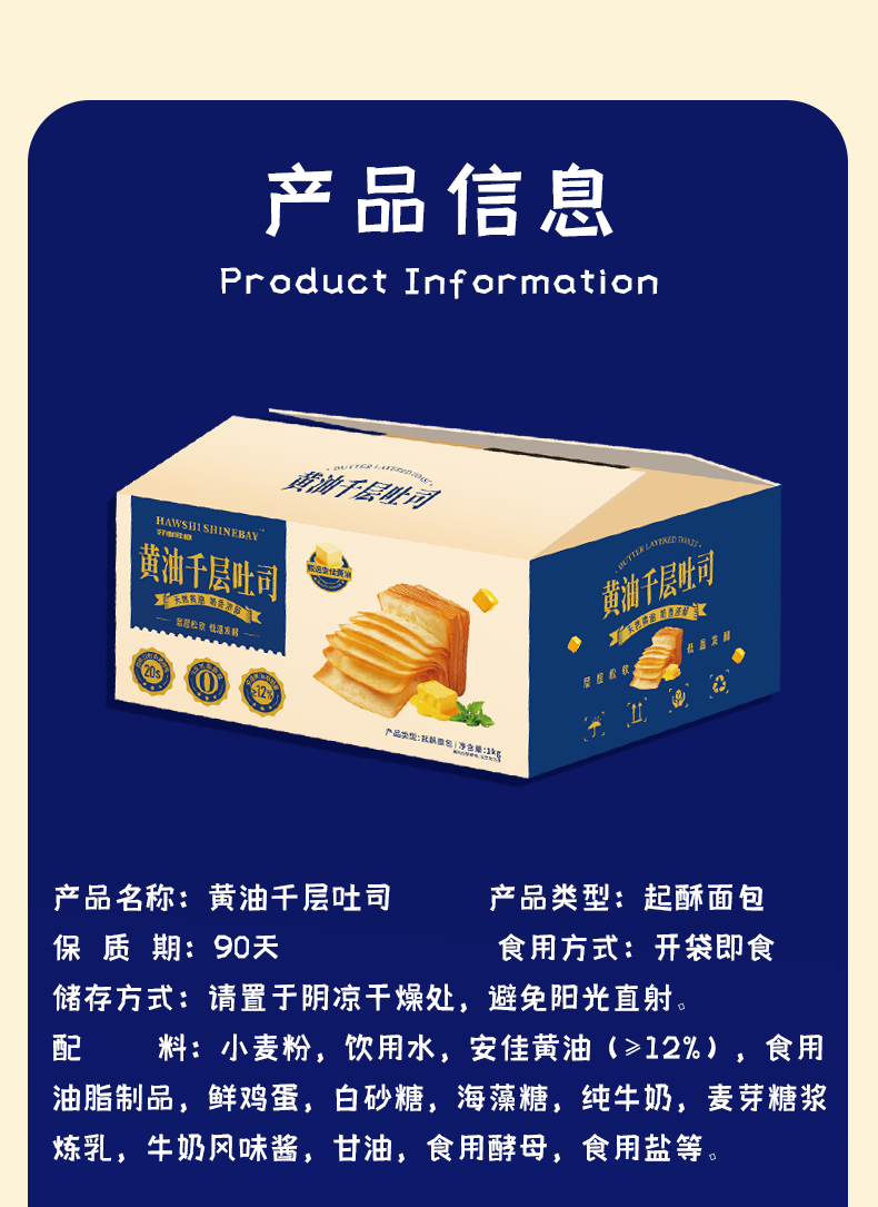 【2.7-2.23停止发货】好事胜杯 HAWSHI SHINEBAY 黄油千层吐司