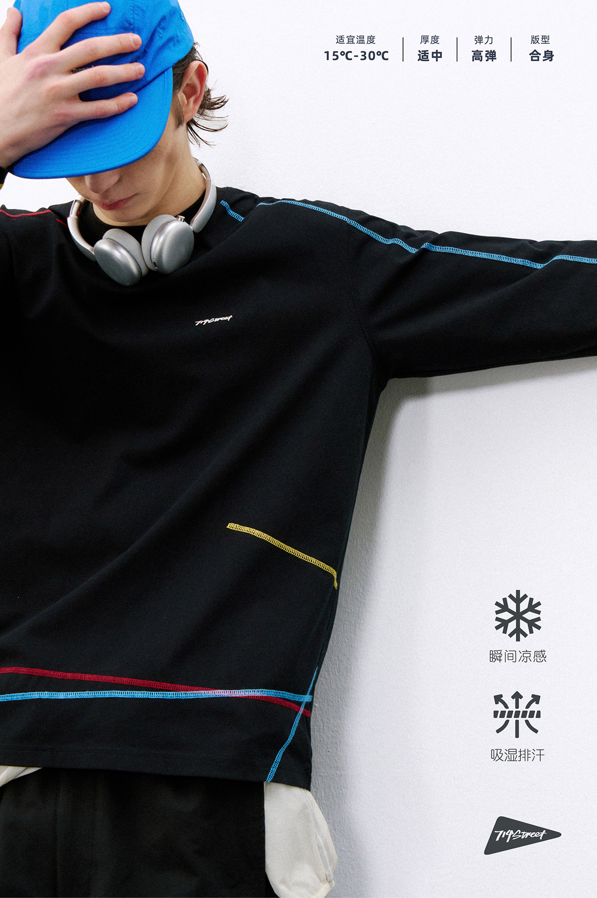 714street户外吸湿速干凉感运动长袖 2026春季潮牌宽松情侣T恤男