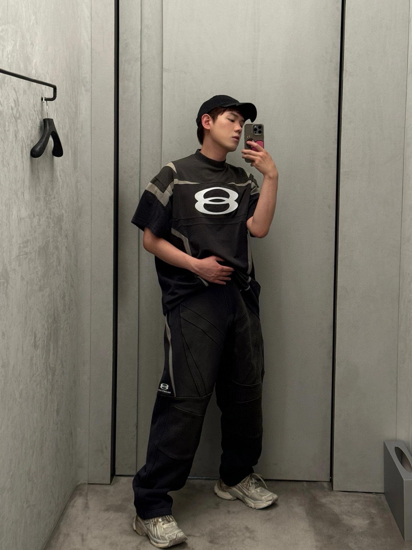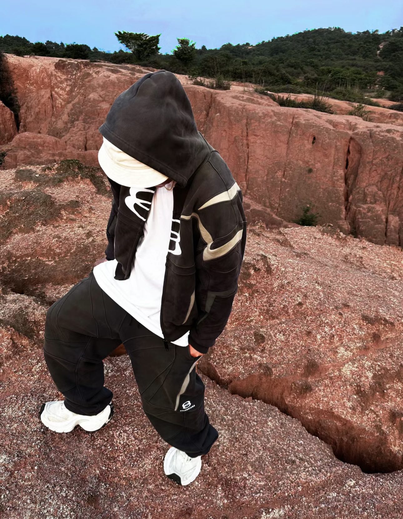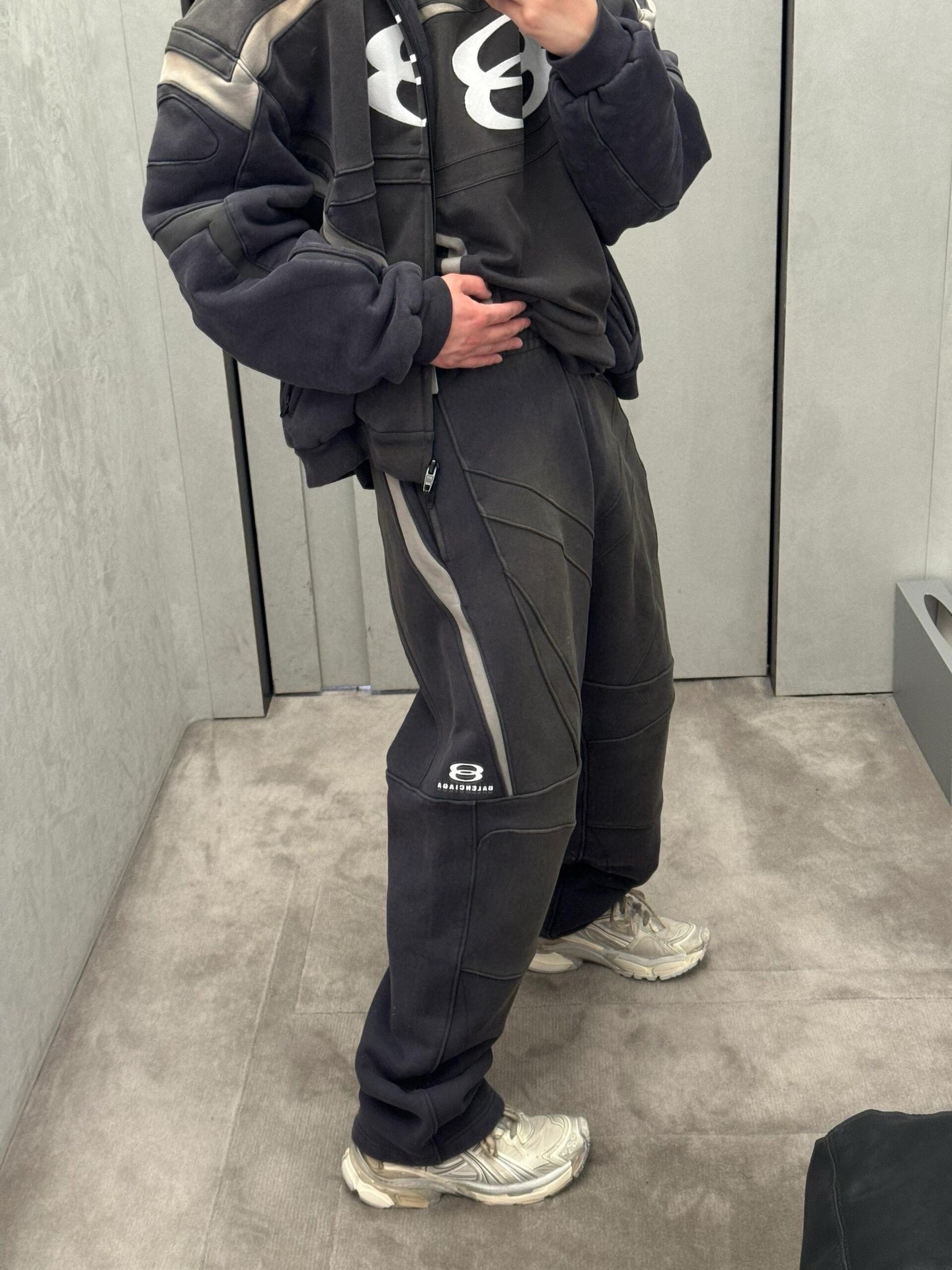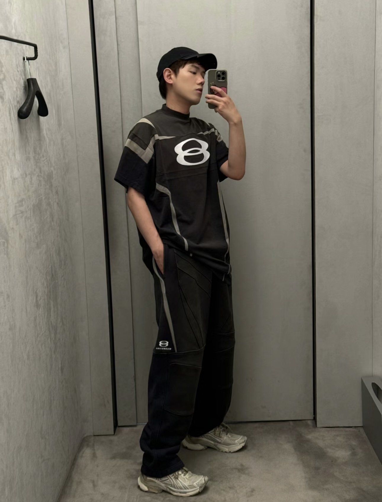 B家 双环废土风拼接套装· 拼接短袖➕运动拼接长裤(JN)