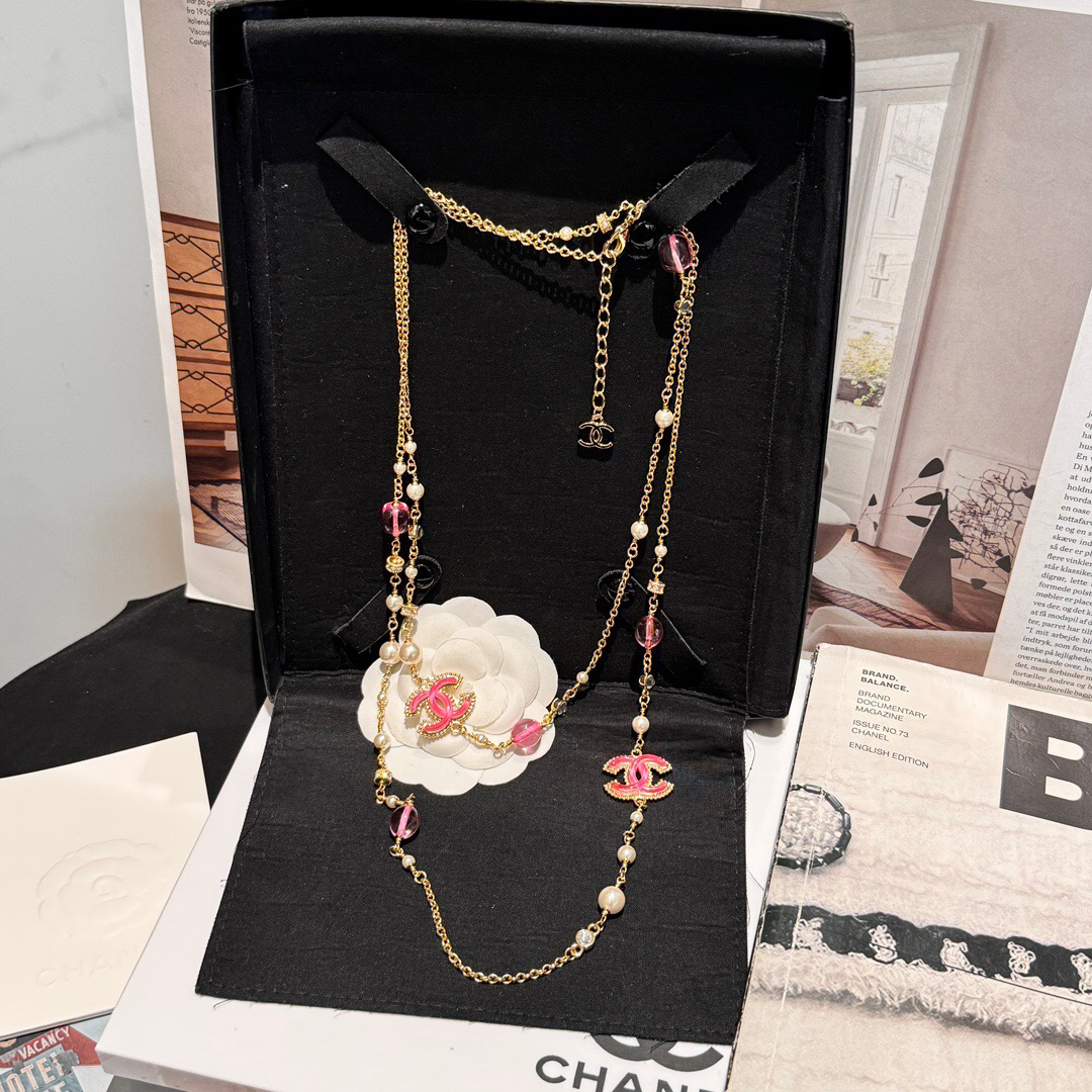 香奶奶粉色琉璃珍珠水钻项链