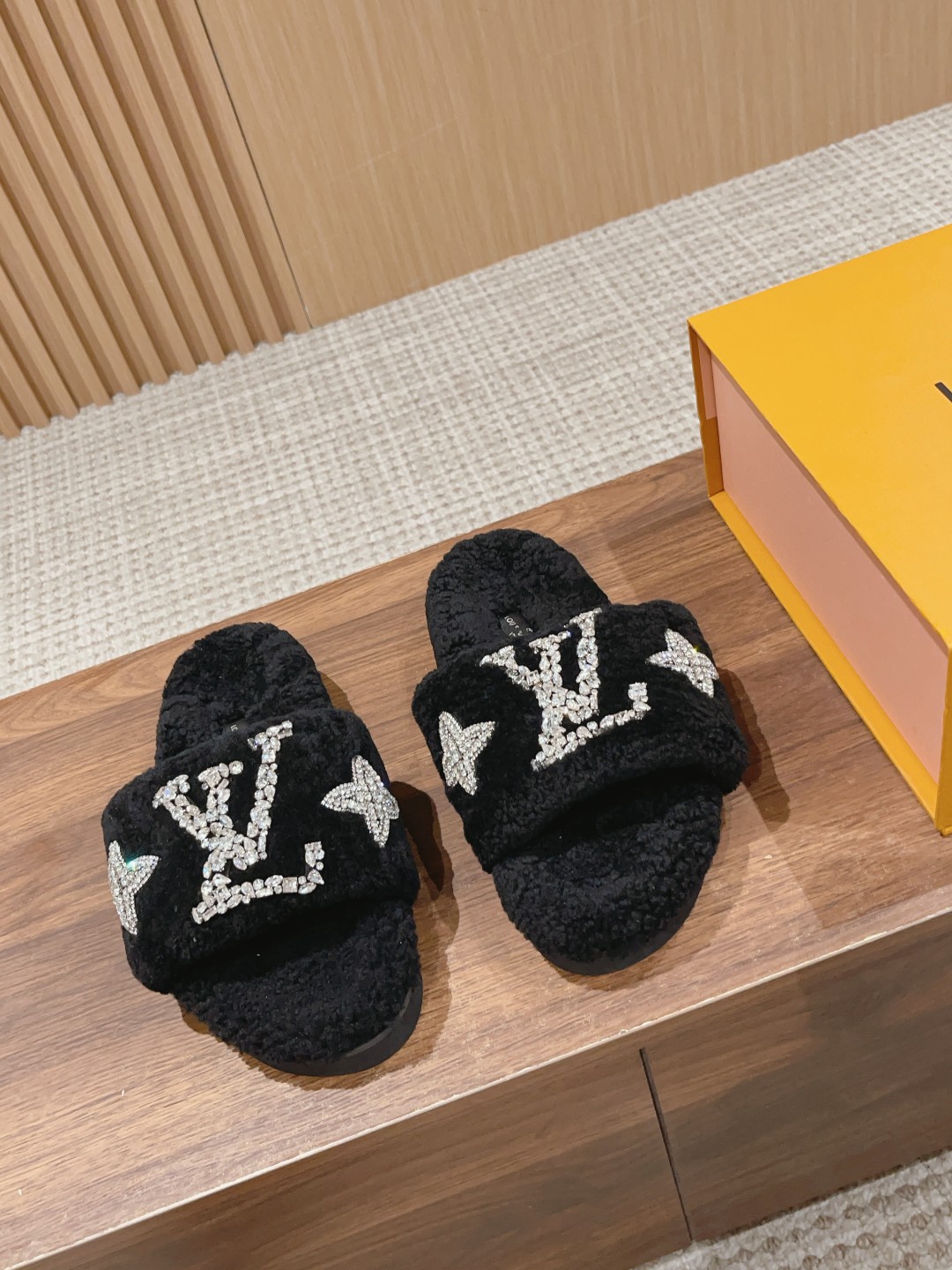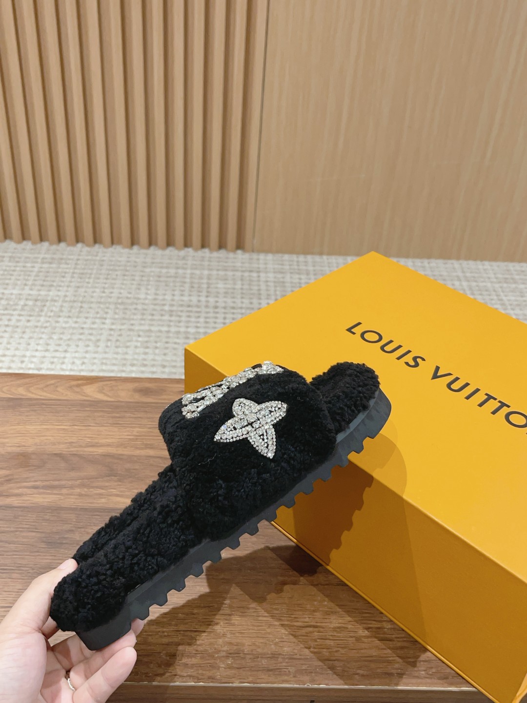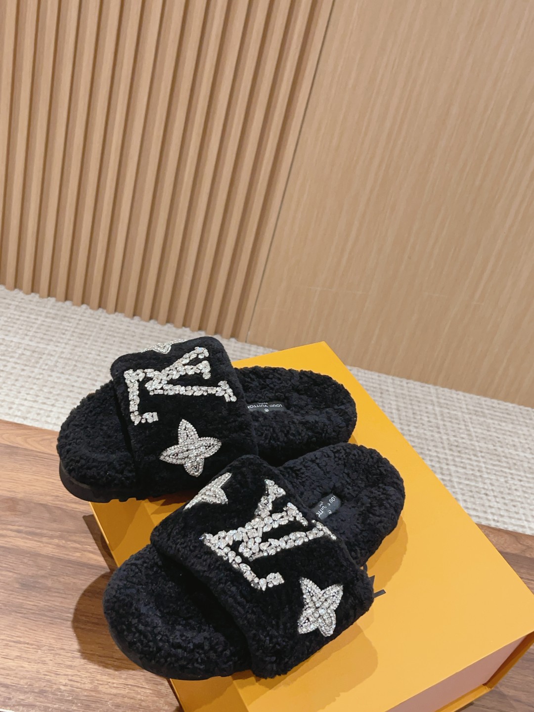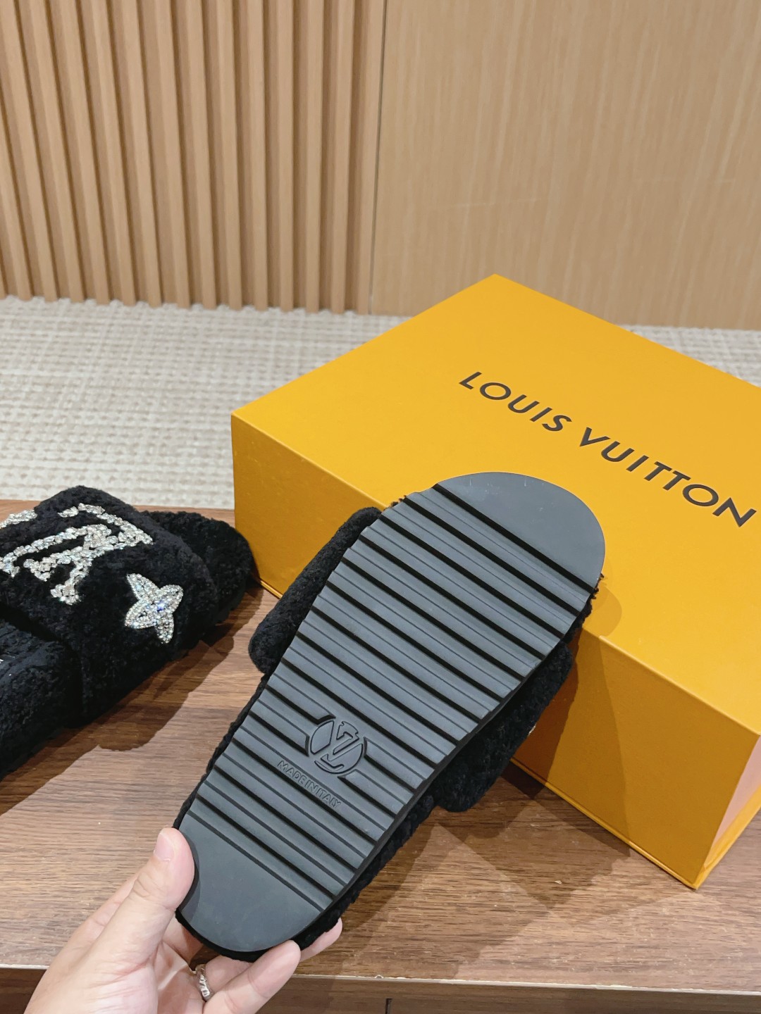 路易威登最新泰迪渐变羊毛拖鞋??顶级品质 (完美细节高端品质入~)原版购入 纯皮毛一体羔羊毛打造!