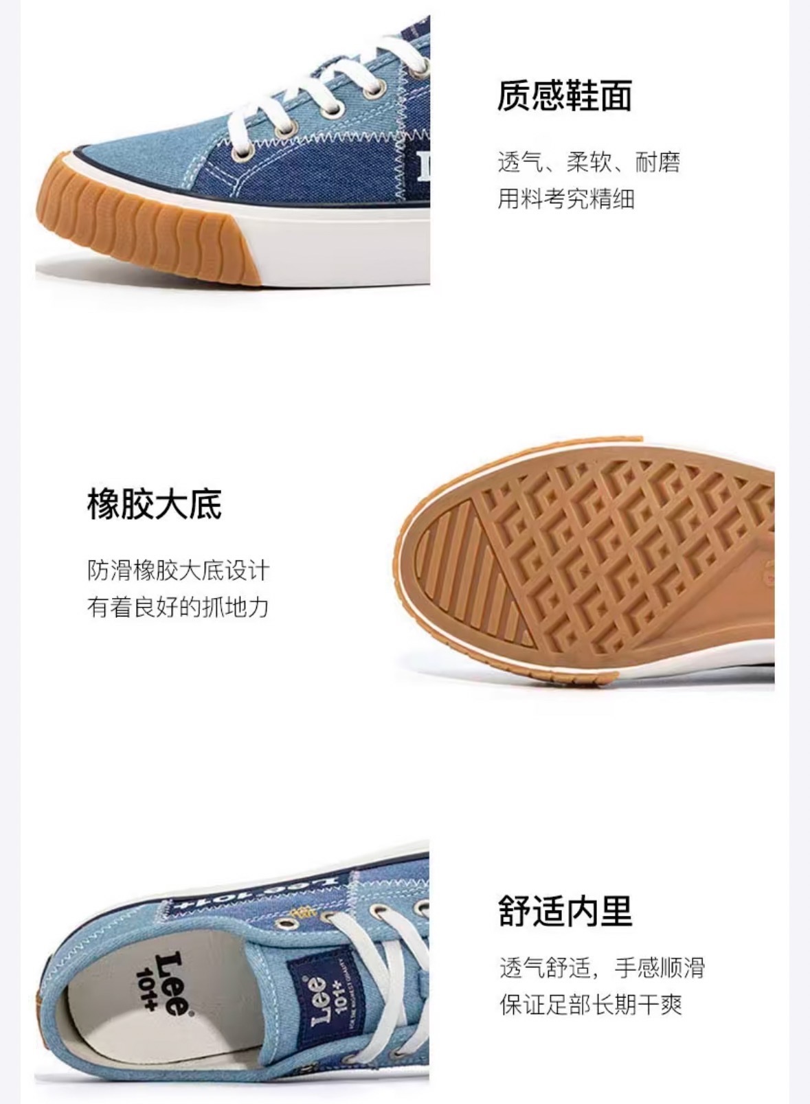 帆布鞋硫化为王,Lee这款低帮/高帮经典帆布鞋就是硫化工艺,质感真的相当nice~有饼干鞋鞋头设计非常有层次感,橡胶硫化包边的设计扎实细腻!上手很有分量感!鞋面采用优质帆布用料考究!纹理清晰有质感,鞋型挺括,上脚非常有型!鞋侧面大LOGO设计辨识度非常高气场很强大!