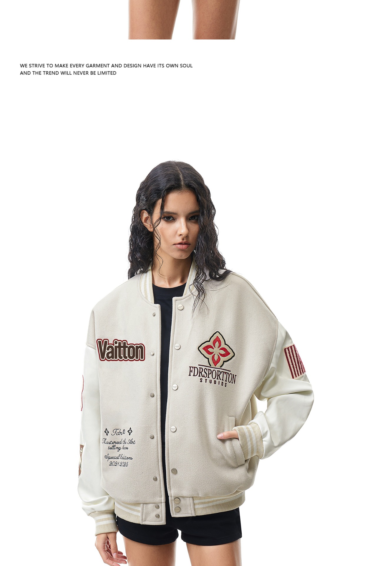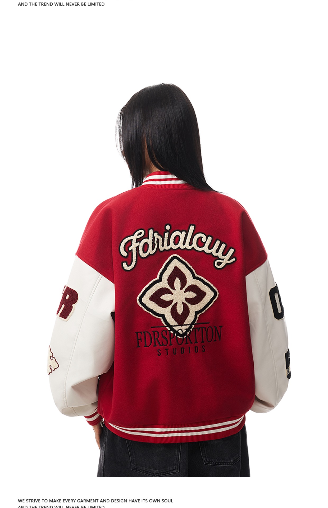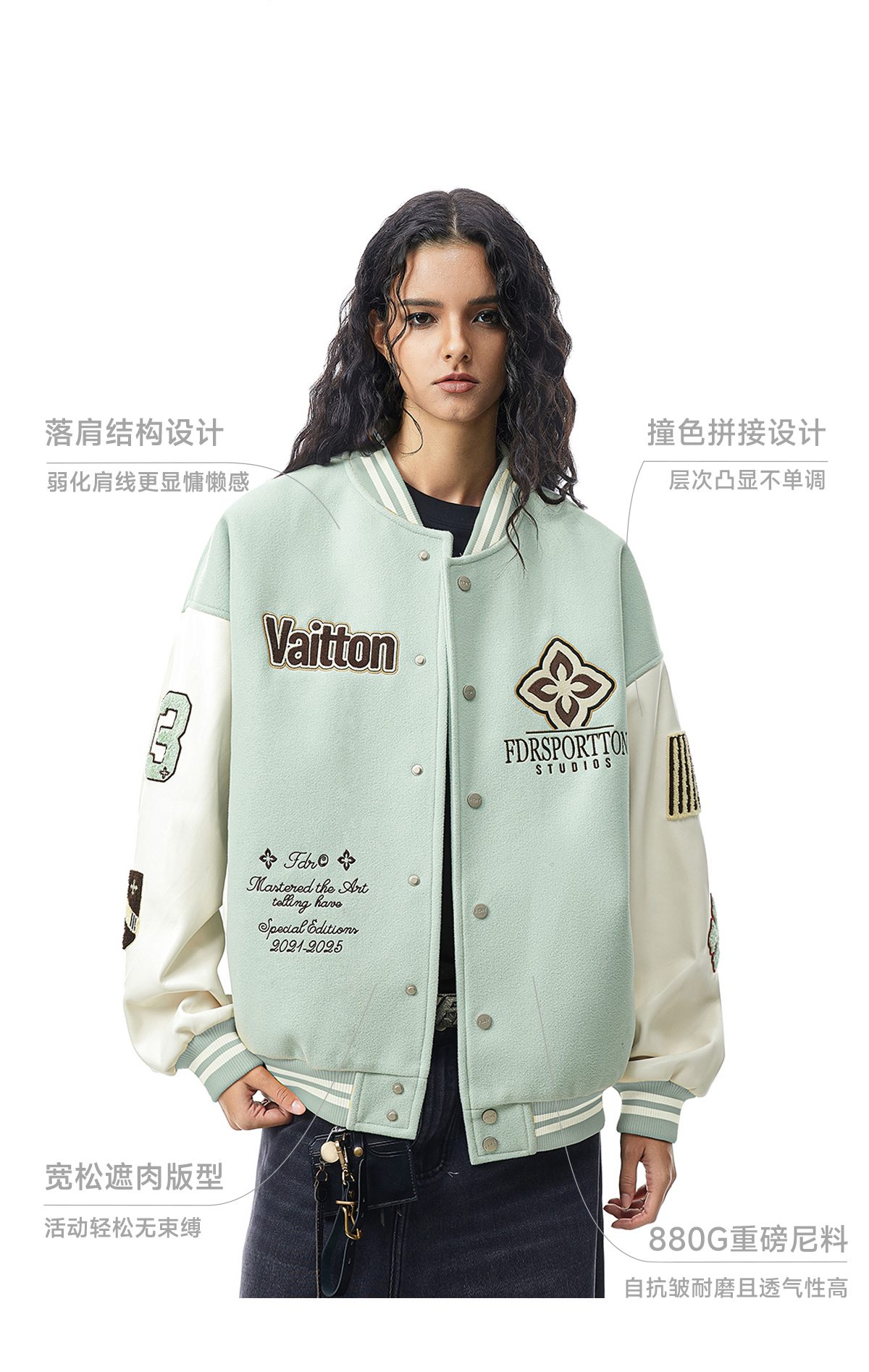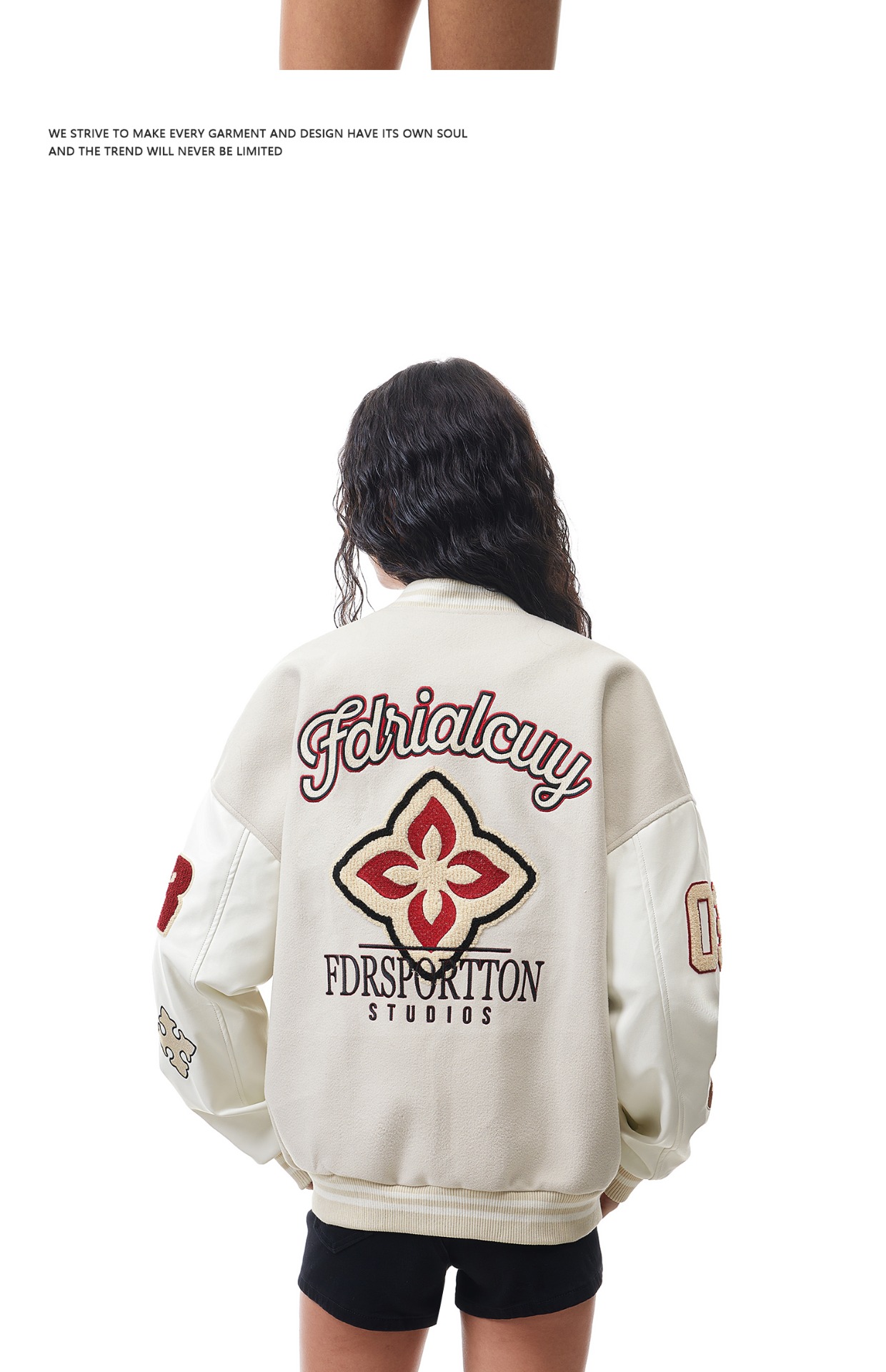 FDR官方店 菱形绣花美式运动夹棉棒球服外套男女秋冬情侣宽松夹克