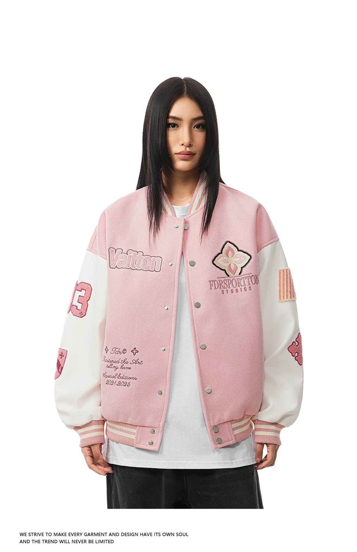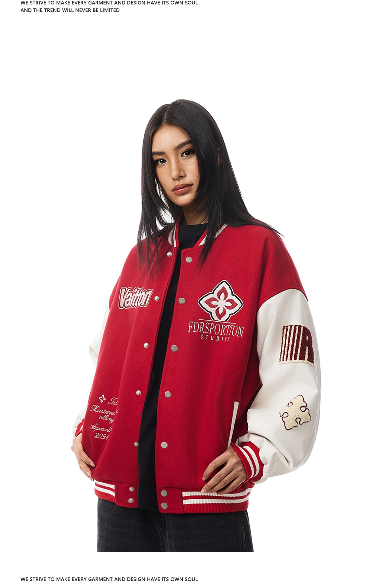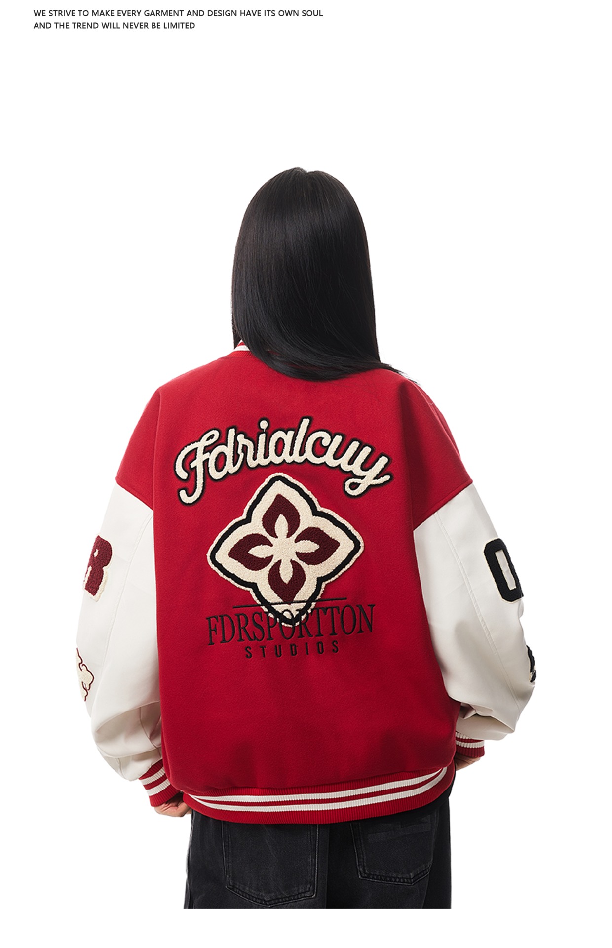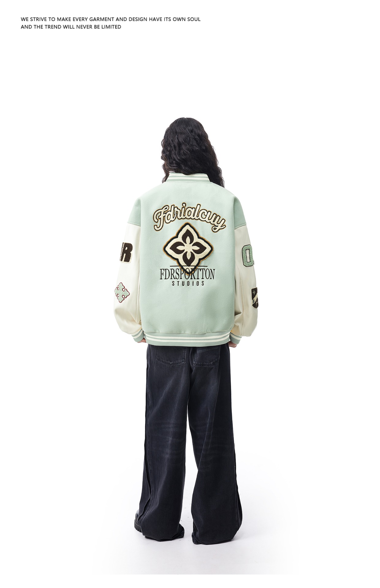 FDR官方店 菱形绣花美式运动夹棉棒球服外套男女秋冬情侣宽松夹克