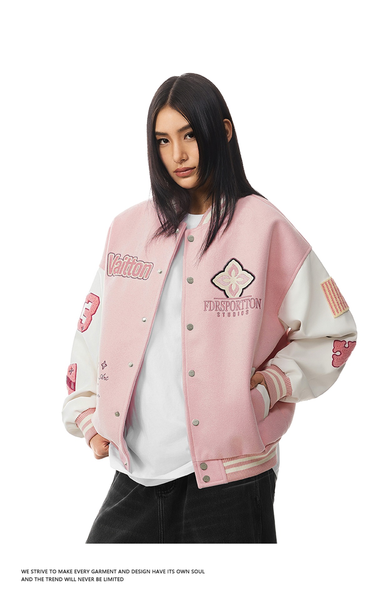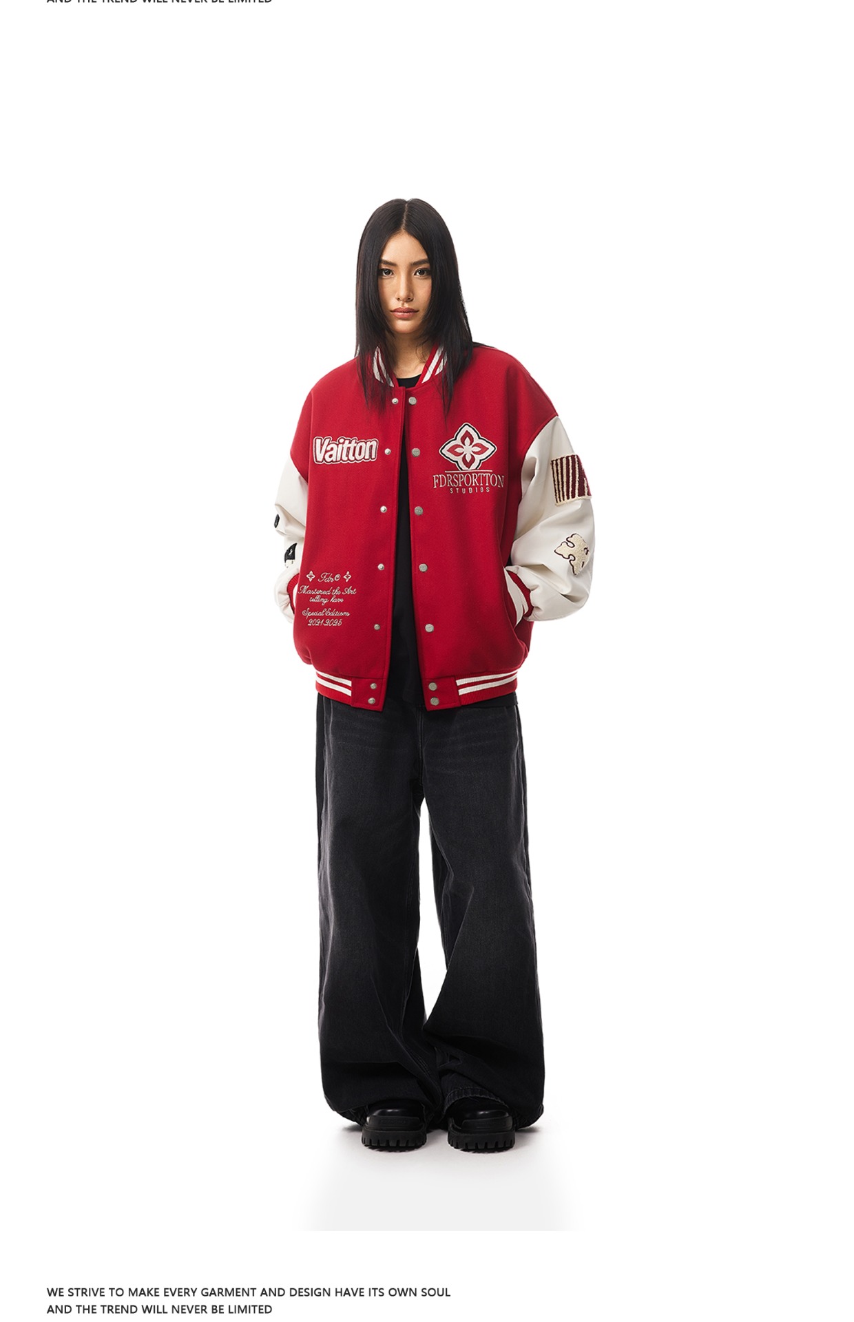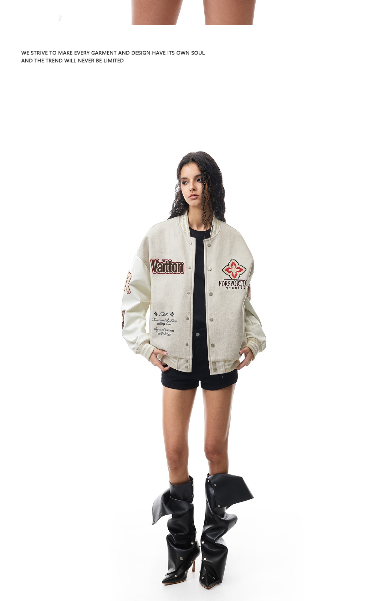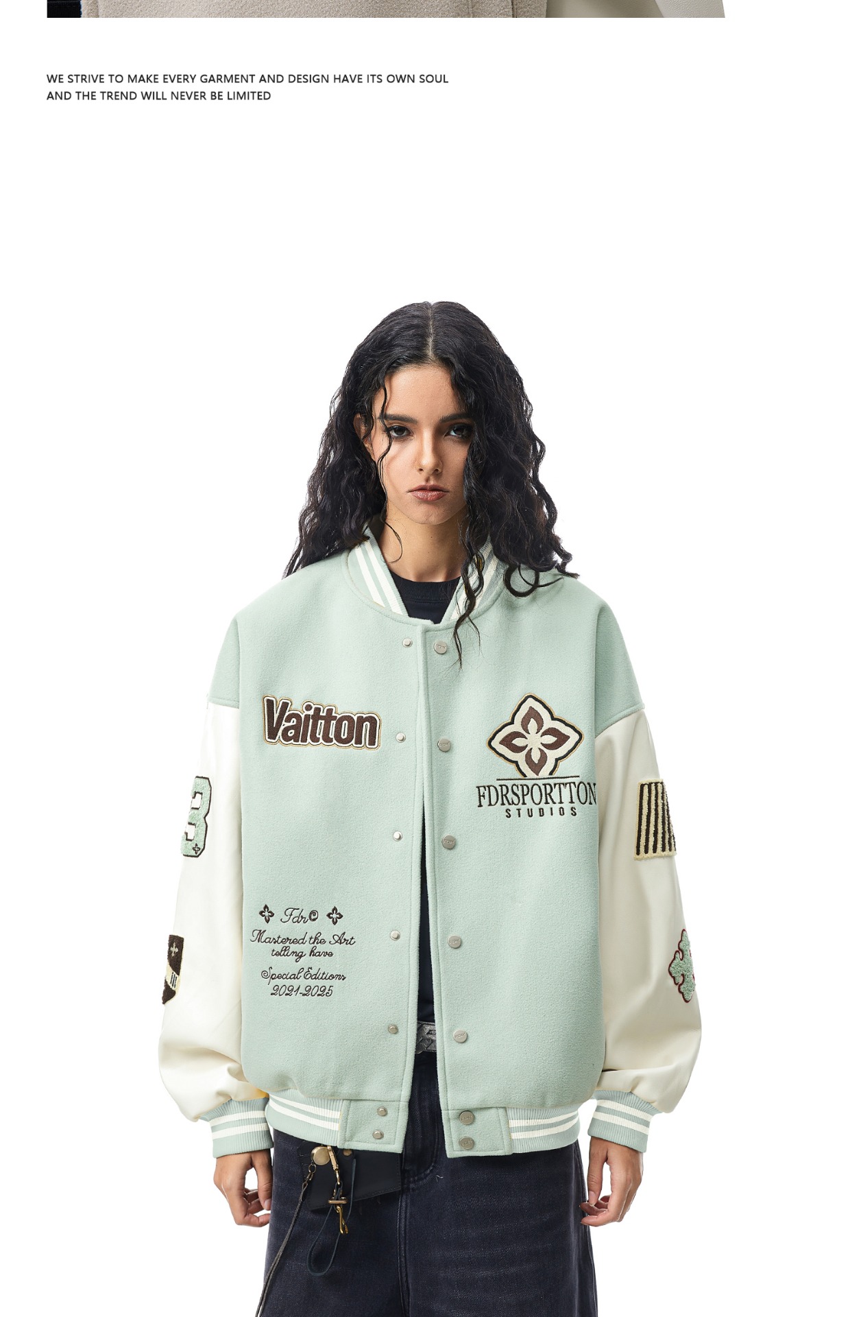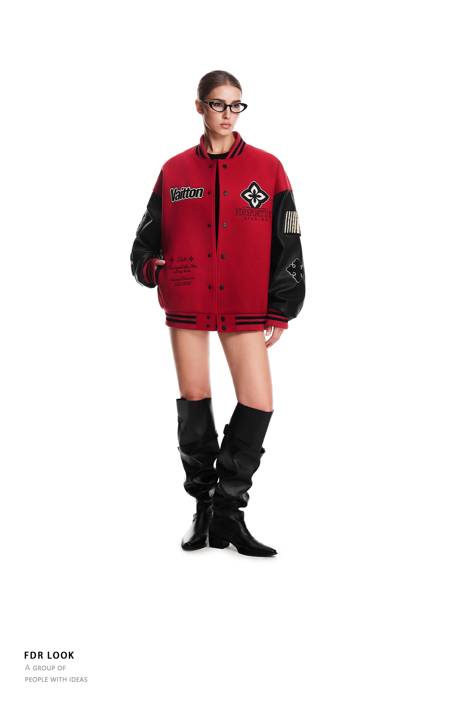 FDR官方店 菱形绣花美式运动夹棉棒球服外套男女秋冬情侣宽松夹克