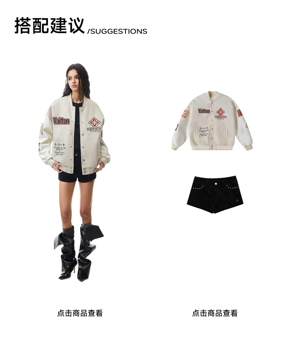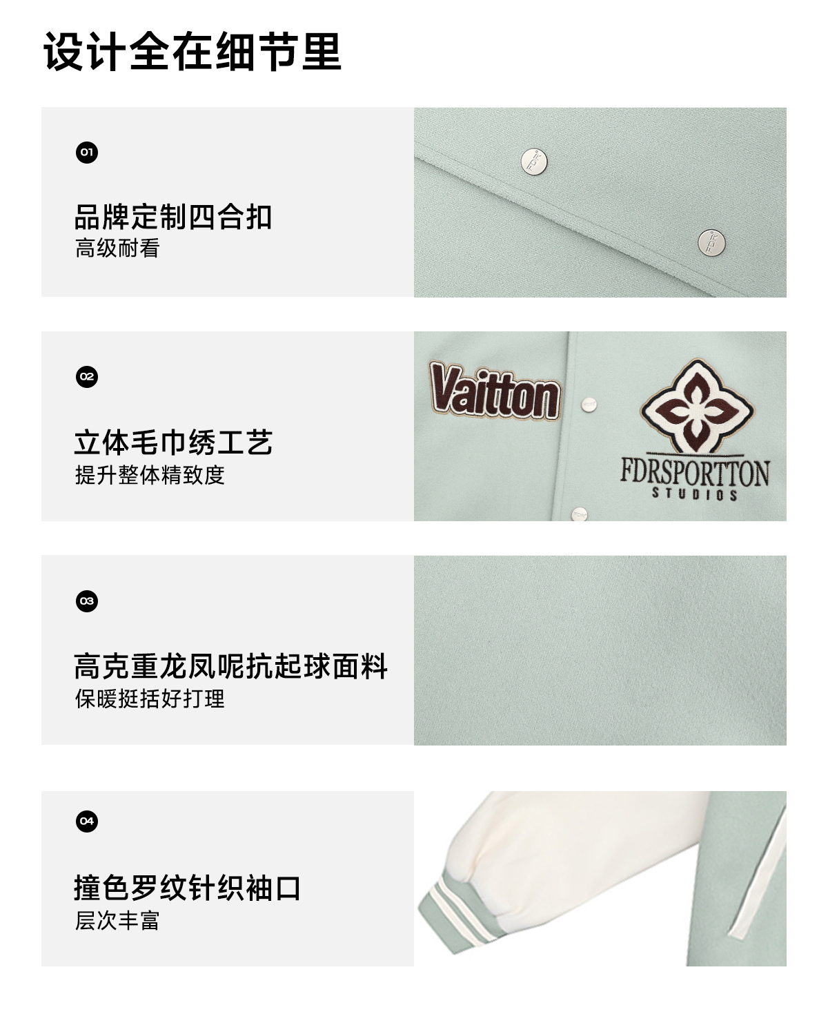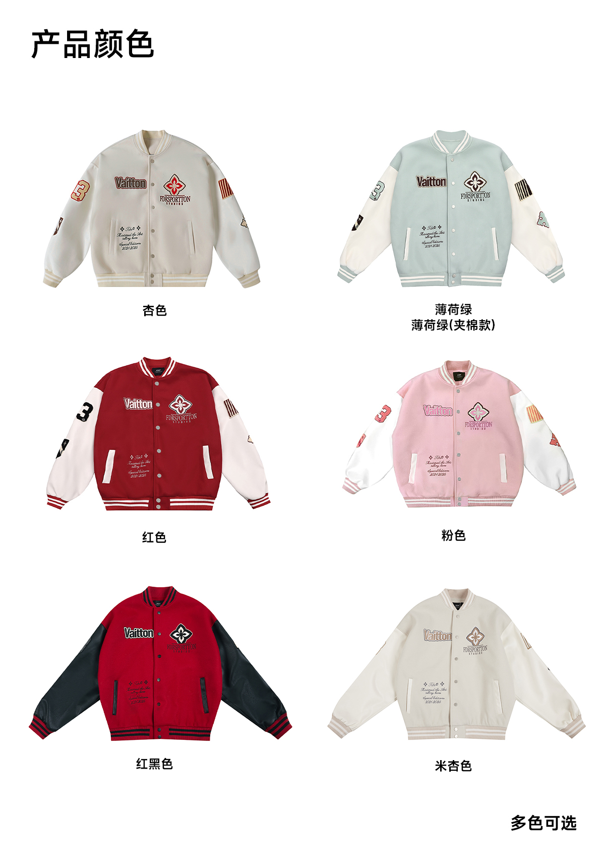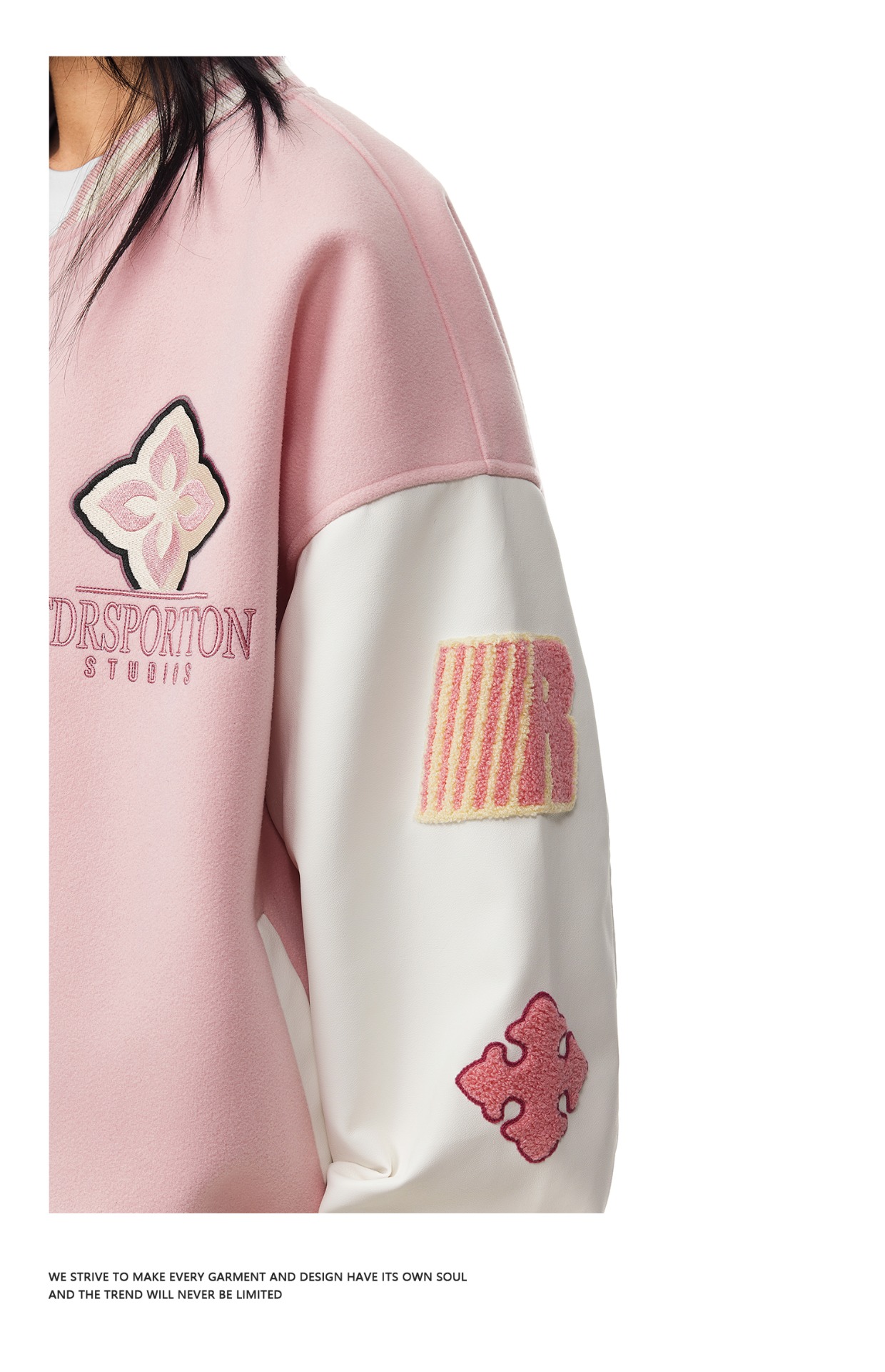 FDR官方店 菱形绣花美式运动夹棉棒球服外套男女秋冬情侣宽松夹克