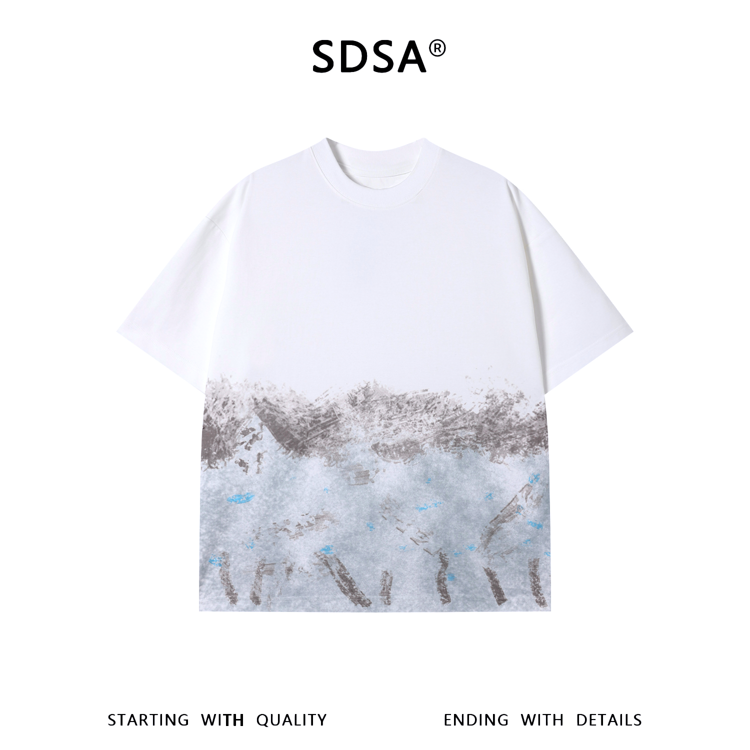 SDSA男装2026新款高贵轻奢复古渐变晕染撞色印花圆领短袖T恤百搭