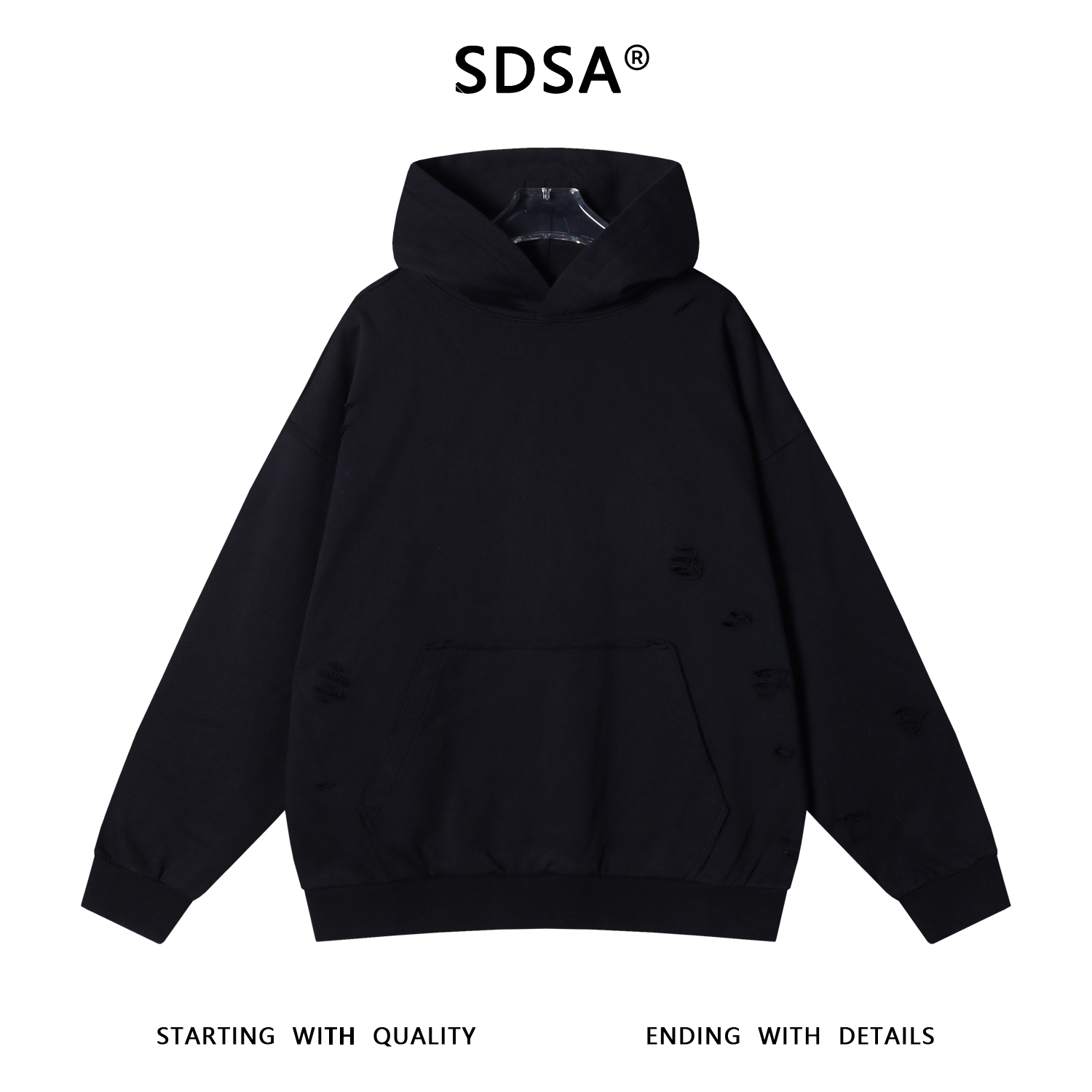 H135秋冬新款破洞拉链拼接卫衣男女秋季休闲宽松时尚长袖百搭上衣