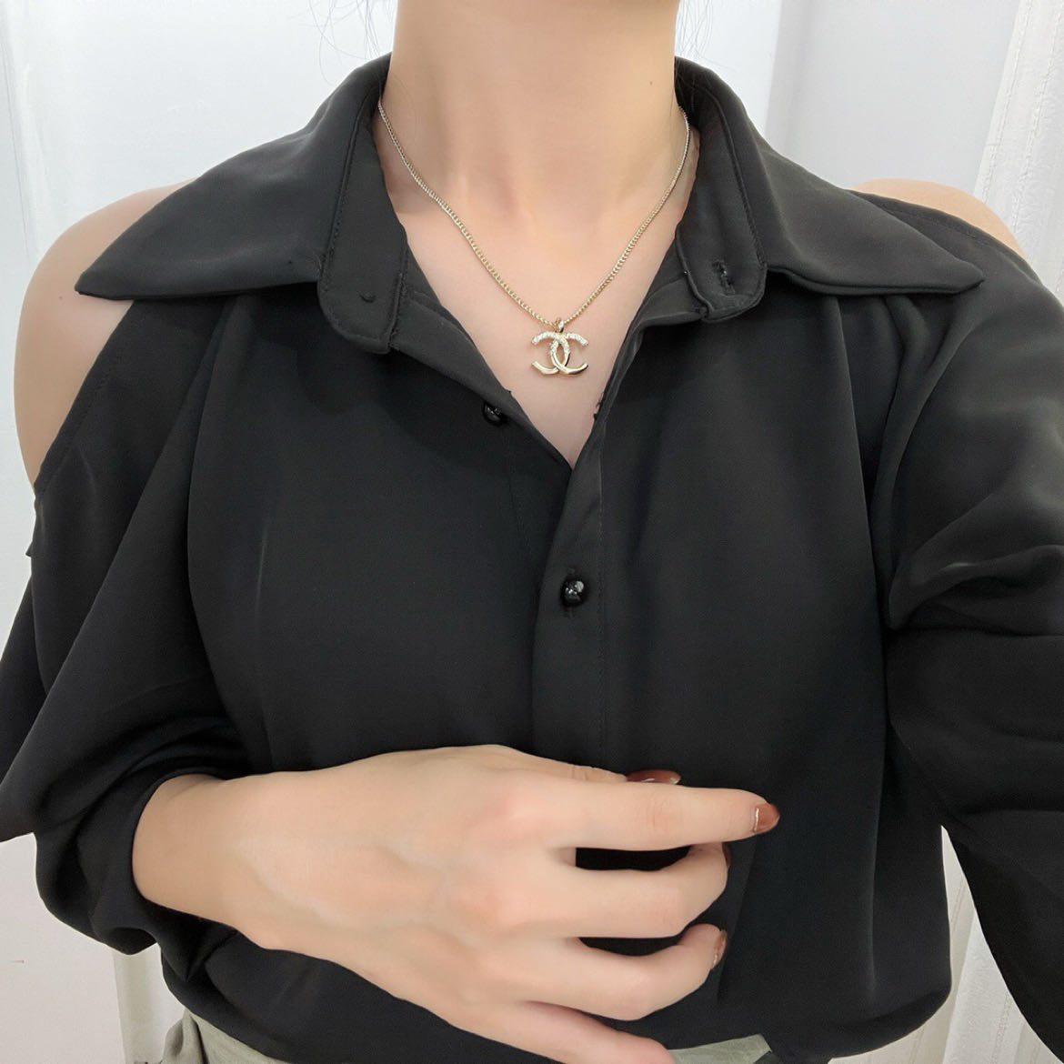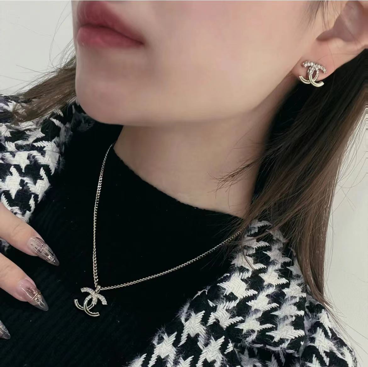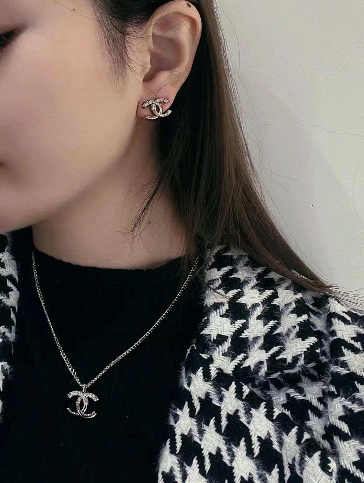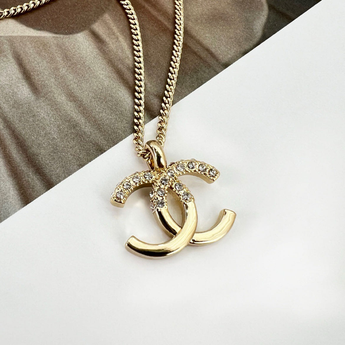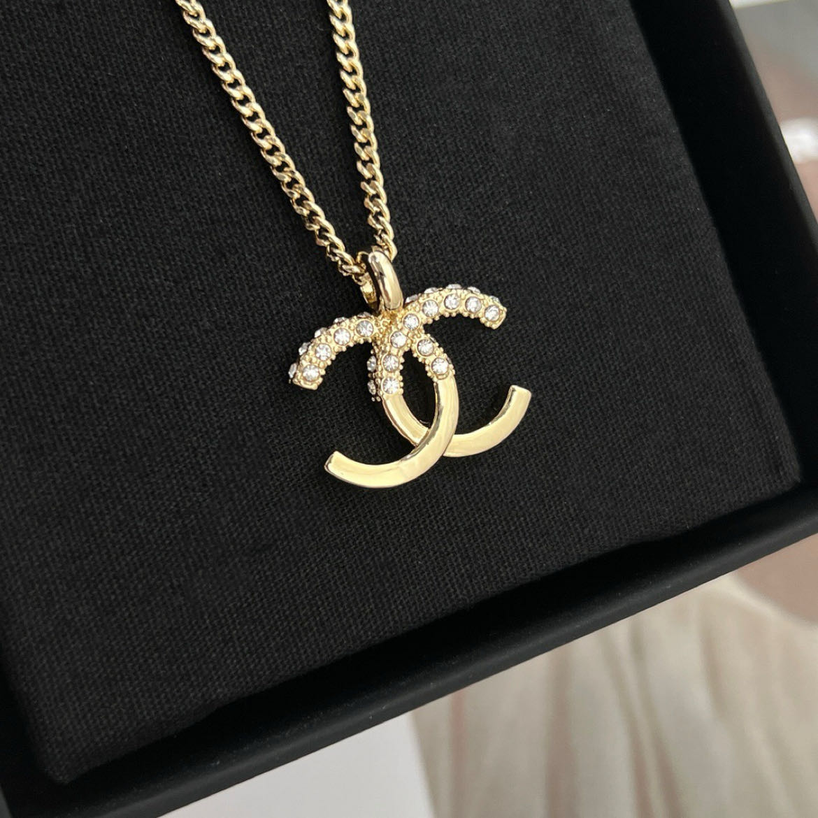 新款☑️CHANEL香奈儿双c水钻拼接项链