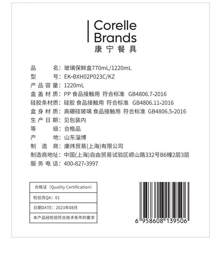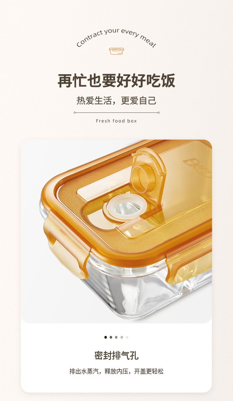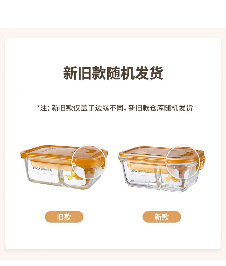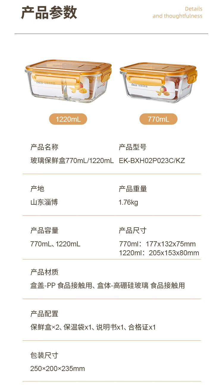 康宁餐具玻璃保鲜盒保温袋食品级冰箱专用密封碗带盖微波炉加热饭盒 保鲜盒便携饭盒 770ML/1220ML