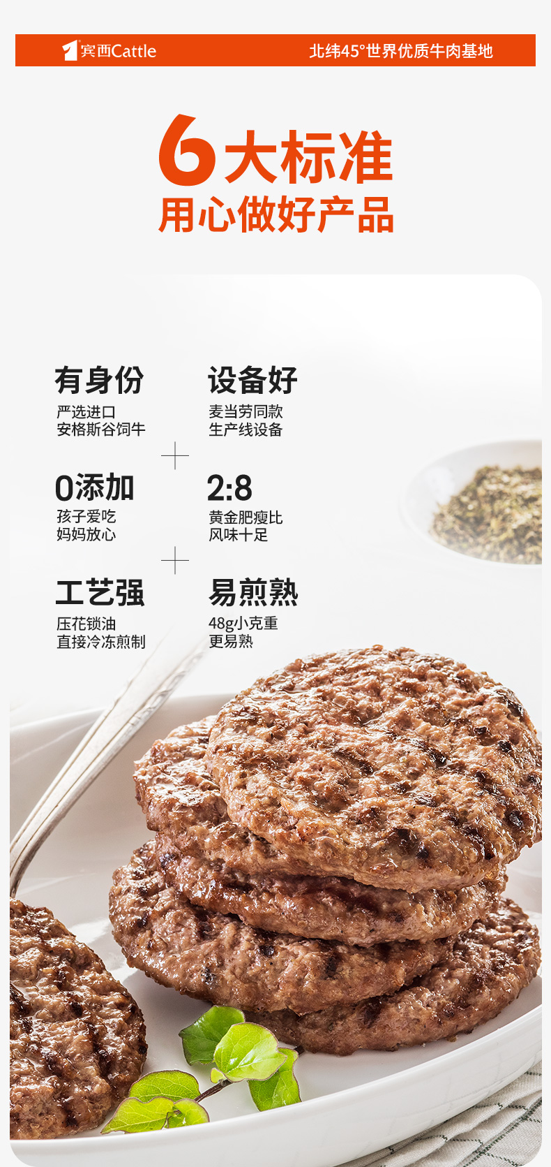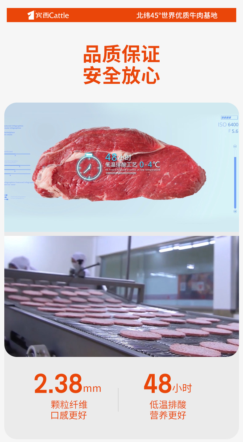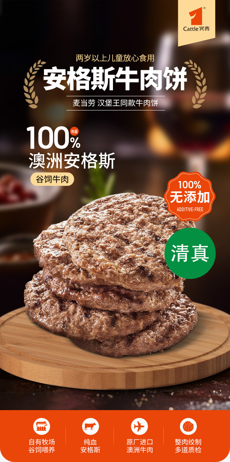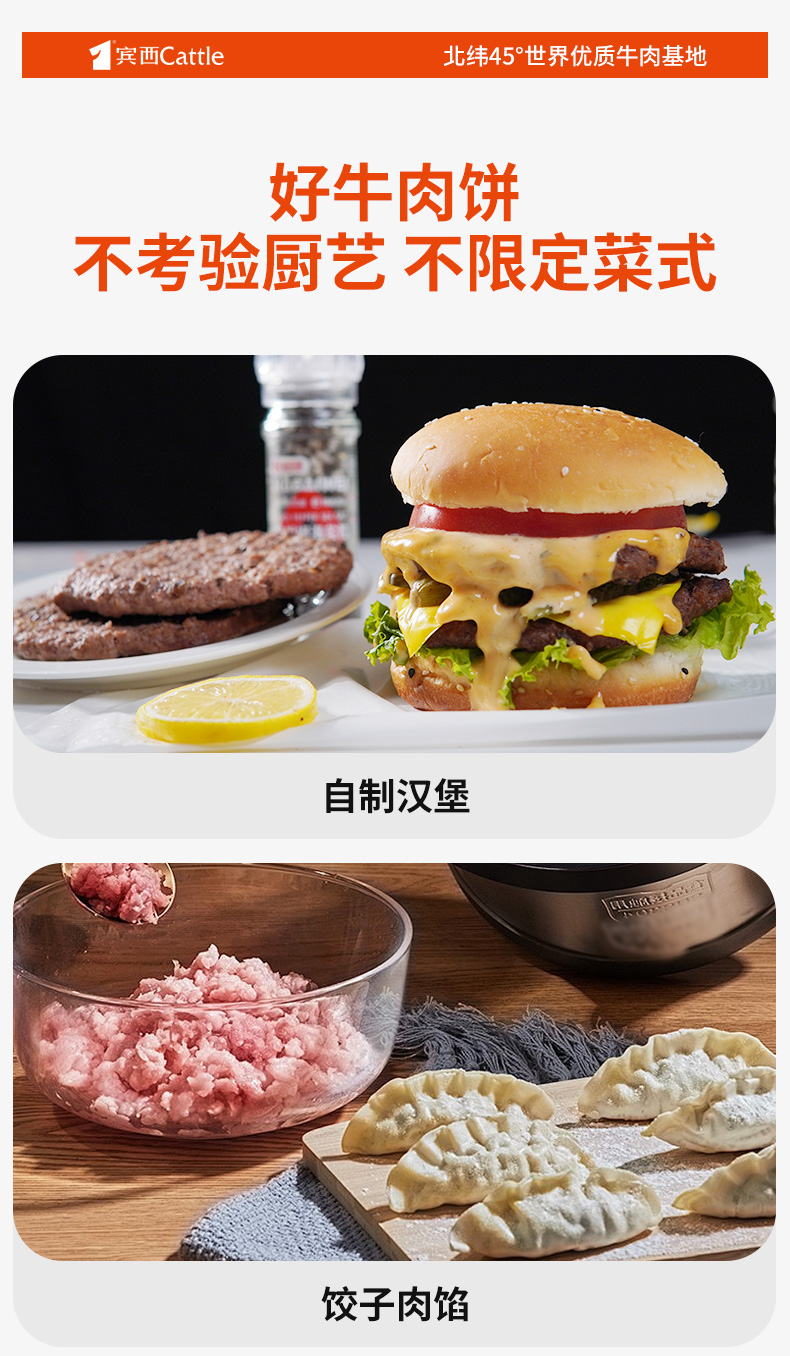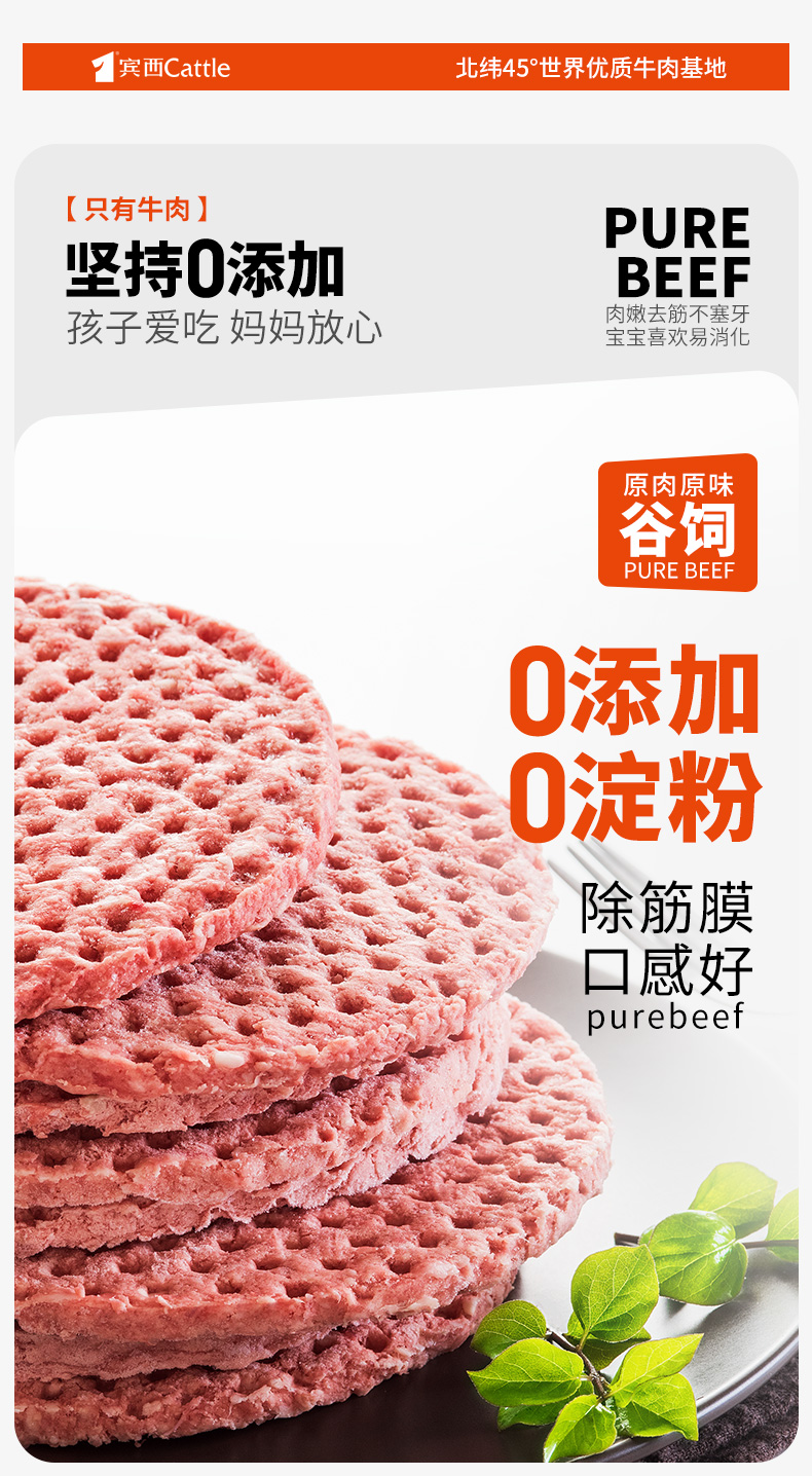宾西安格斯牛肉饼谷饲牛肉早餐半成品汉堡店同款牛肉堡 240g/袋