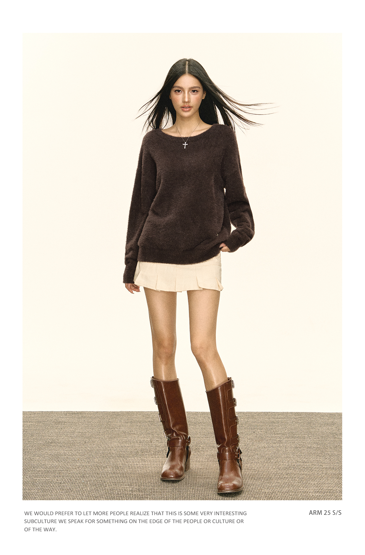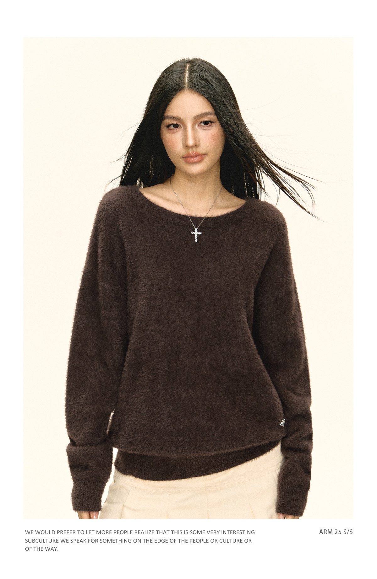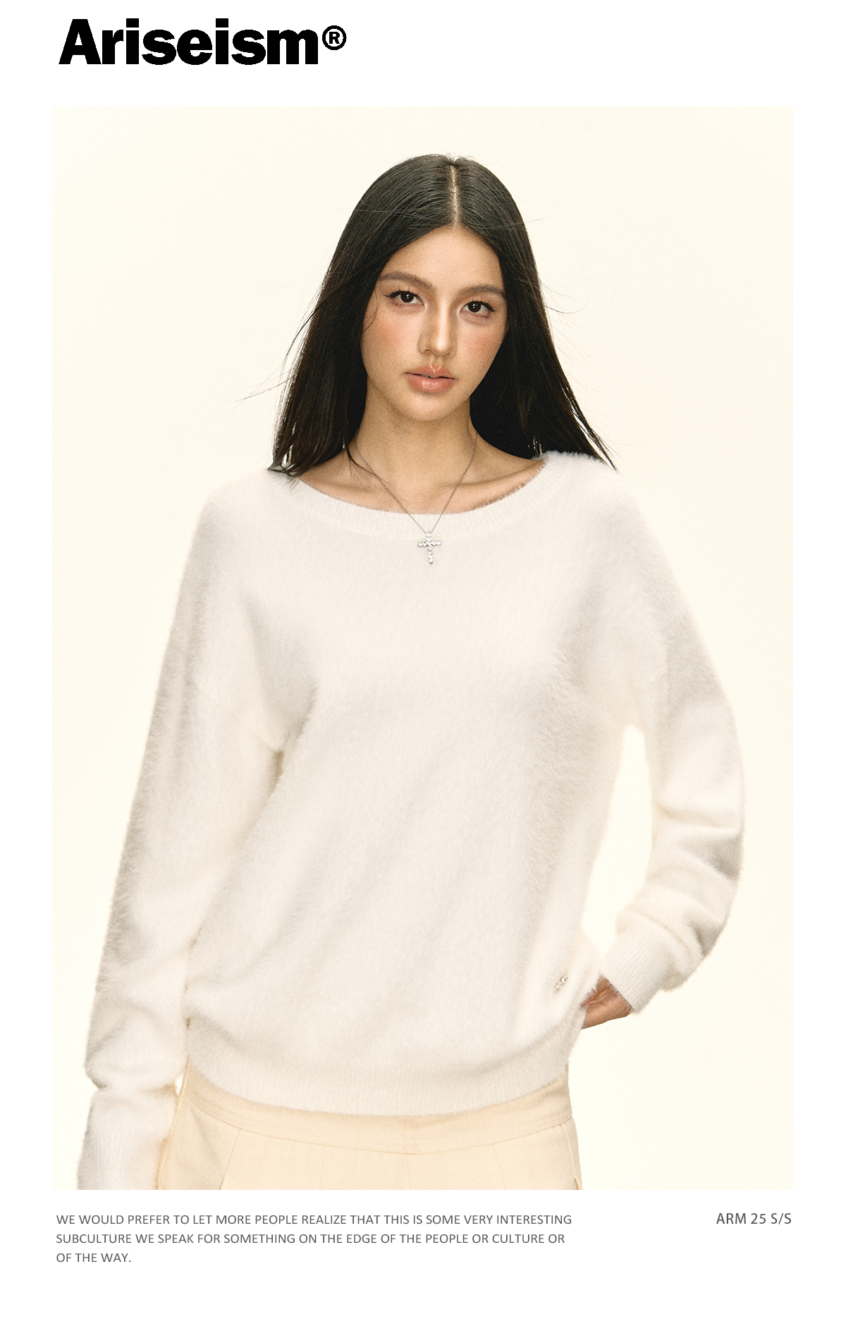 Ariseism 美式复古设计感圆领毛衣女秋季新款宽松上衣