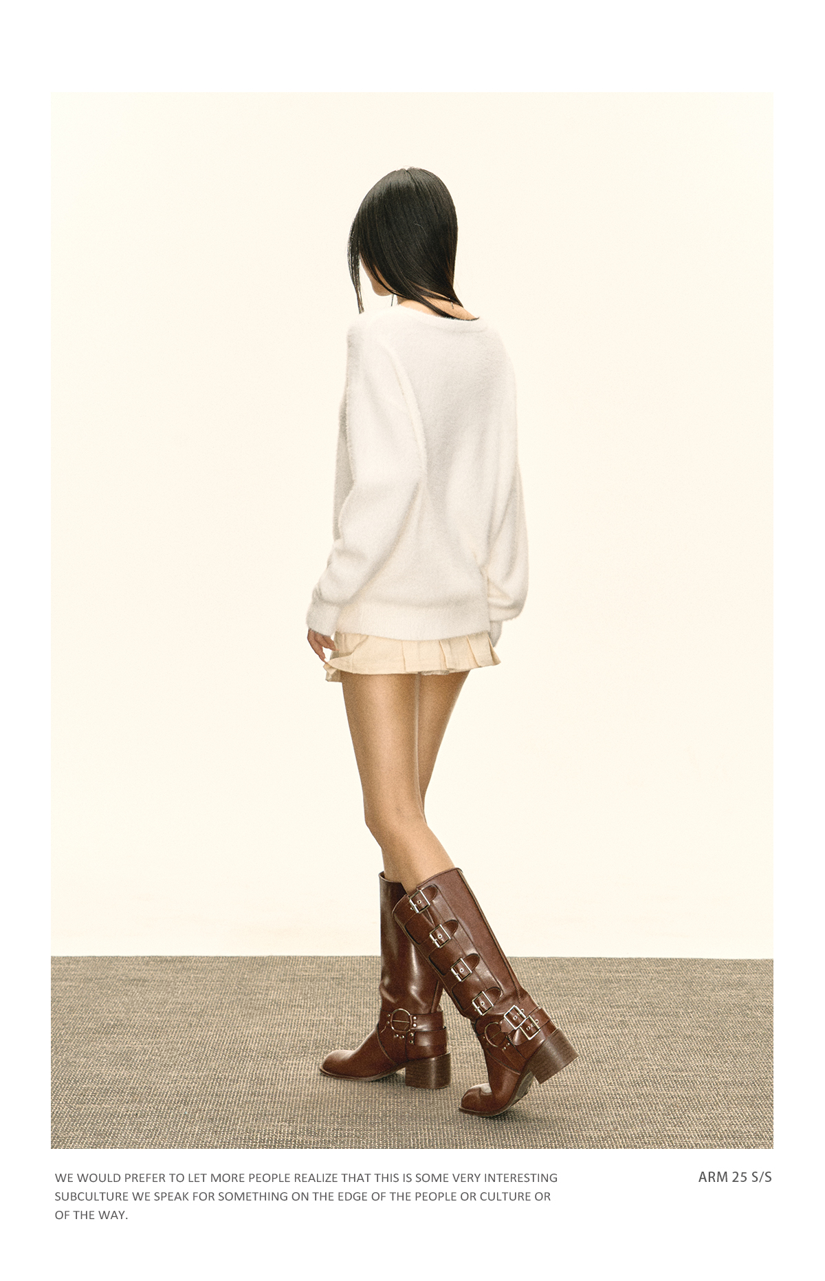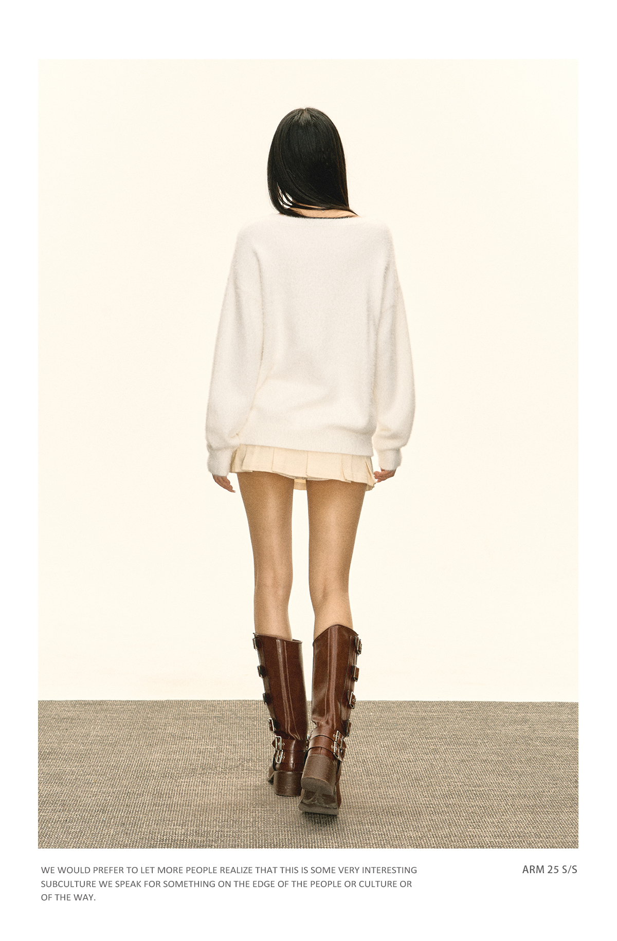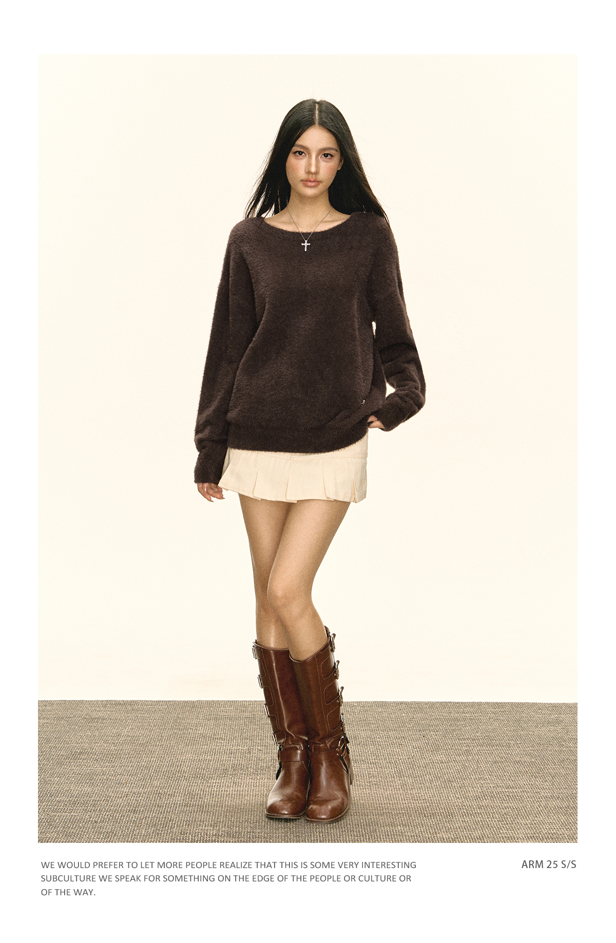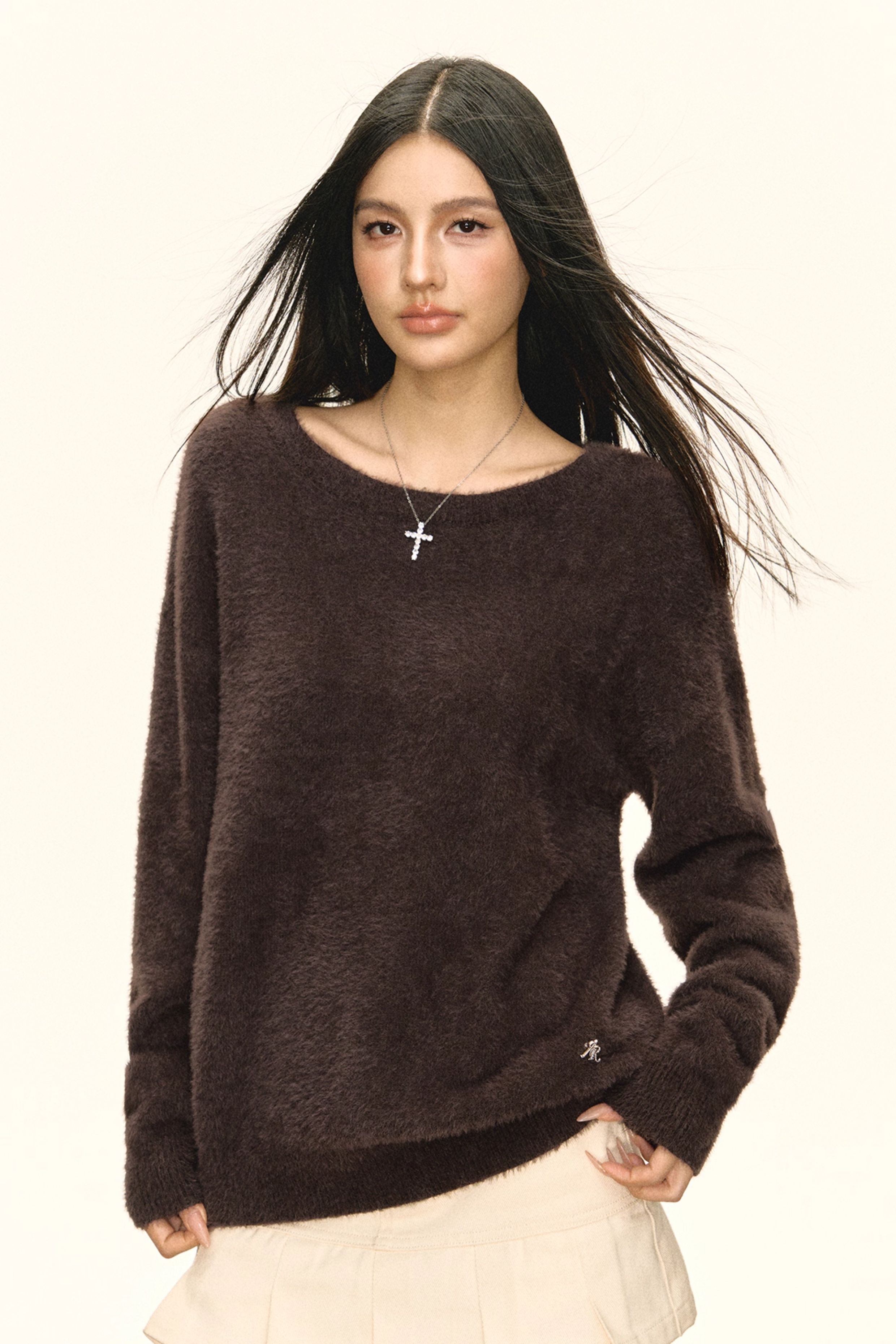 Ariseism 美式复古设计感圆领毛衣女秋季新款宽松上衣