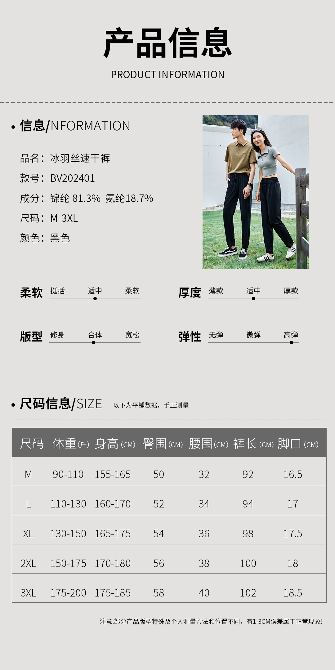 品名:muyanhuan速干裤 规格:黑色(M-3XL) 产地及发货地:浙江 发货时间:下单一般48小时内发货(周末、节假日除外) 发货快递:圆通快递(暂不支持指定快递) 运费政策:该商品全国部分地区包邮(海南,内蒙古,甘肃,青海,宁夏需补差运费10元/单,新疆、西藏、港澳台不发货,请知悉) 售后政策:本品包装配件完整、未拆封、不影响二次销售支持7天无理由退换货(无运费险),请知悉 |