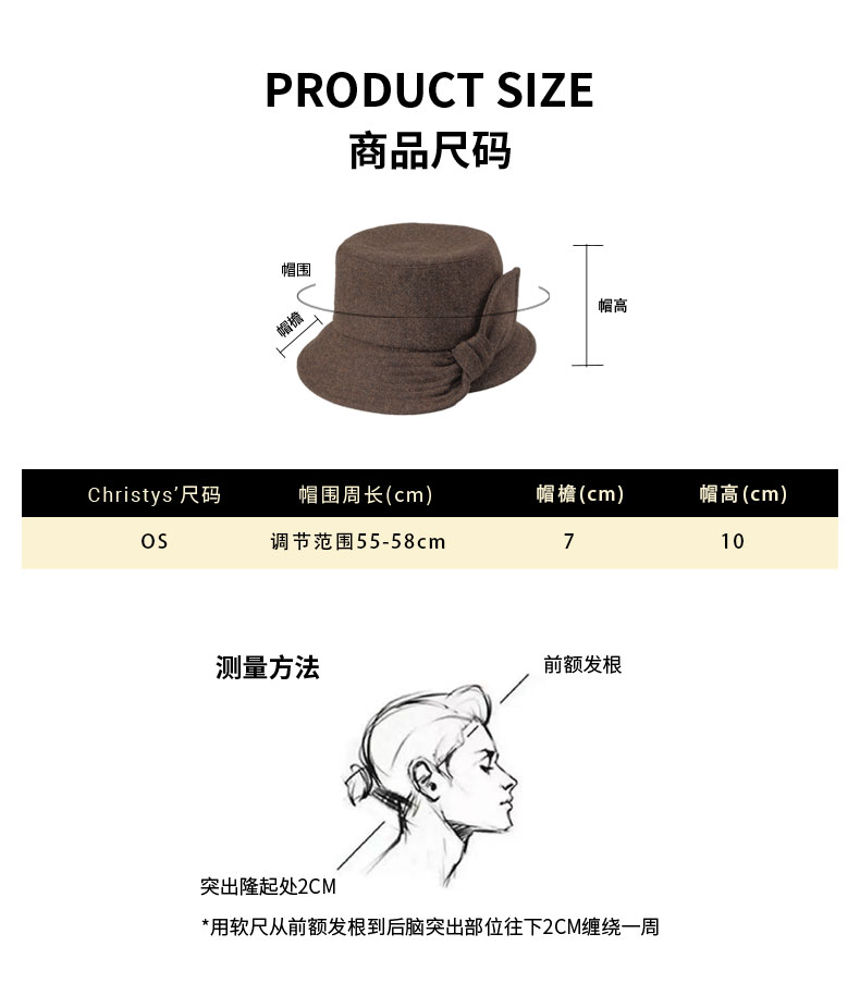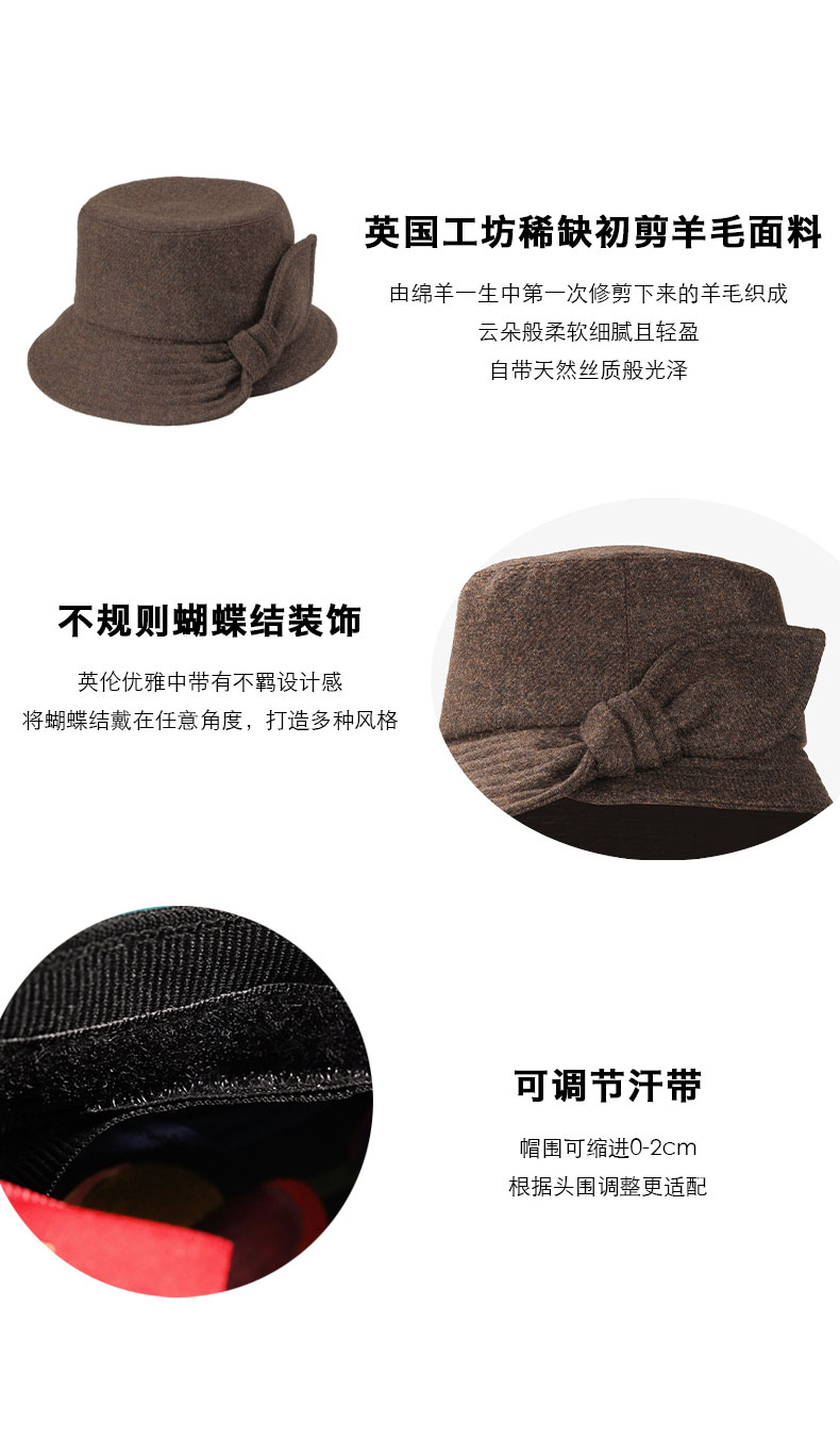 【英国王室御用品牌】Christys英伦复古初剪羊毛蝴蝶结渔夫帽