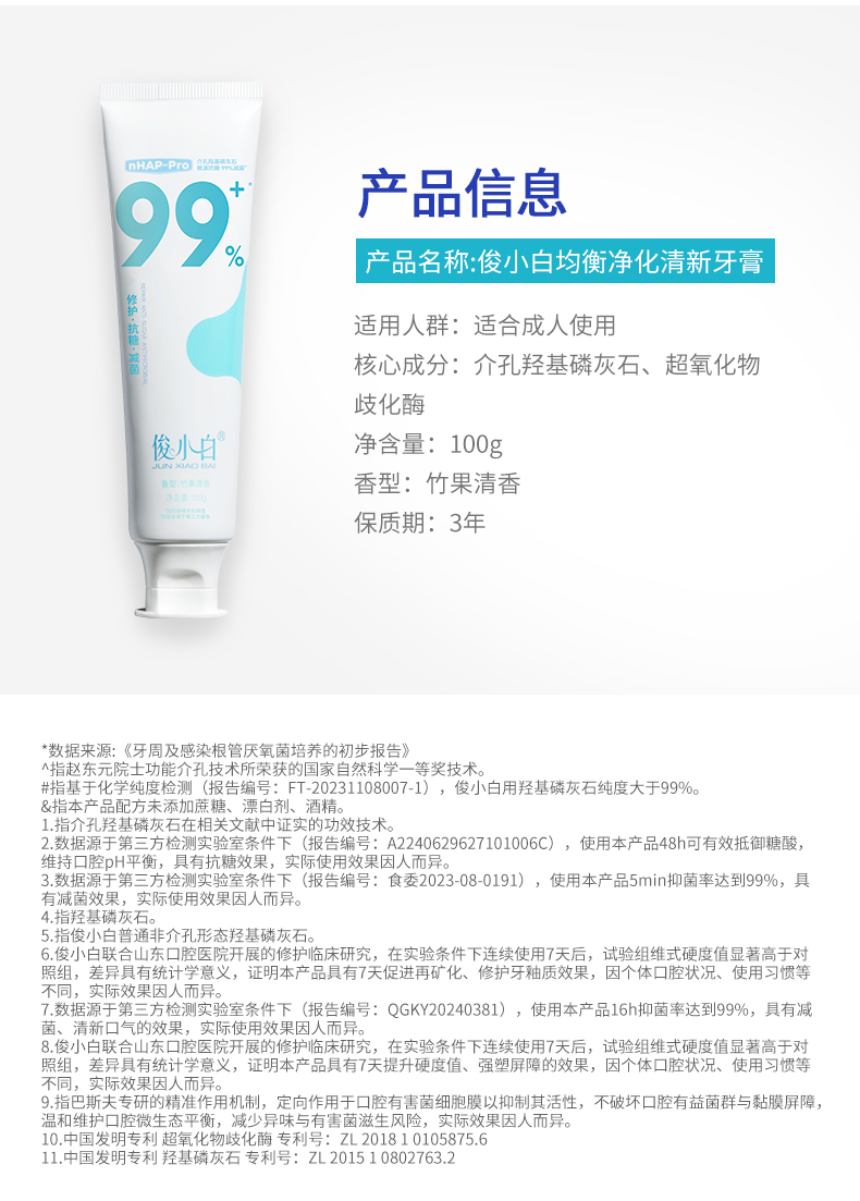 【爆品任选专区】-口气清新-俊小白均衡净化清新牙膏100g(单支装)