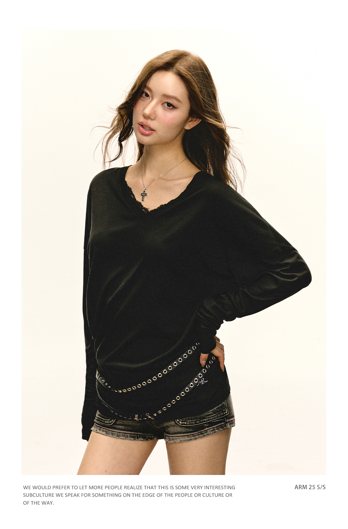 Ariseism 美式复古修身长袖t恤女2025春季新款上衣