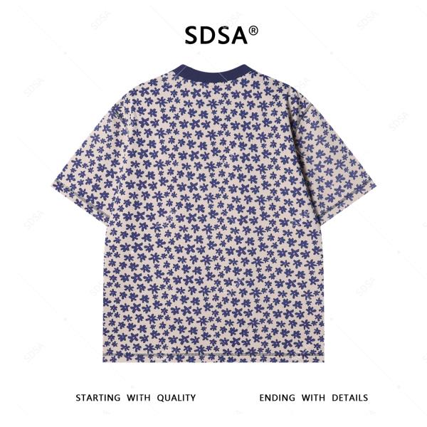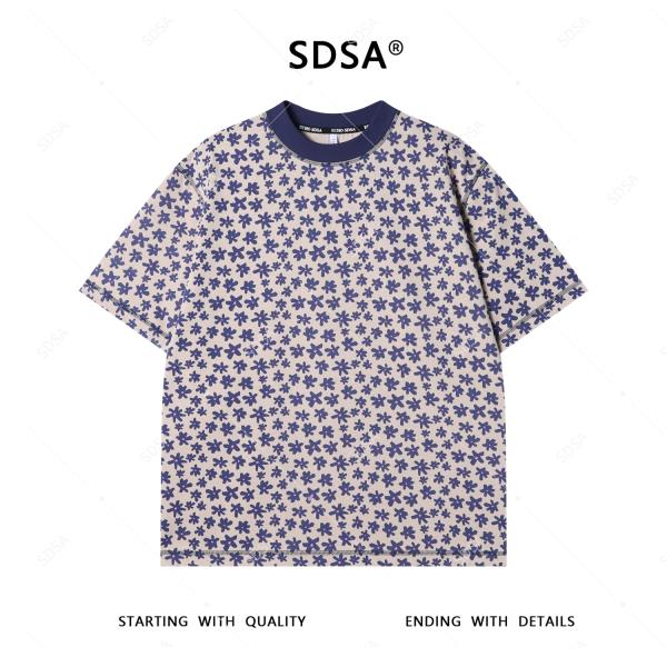 T3886夏季高级感新款男士花卉图案短袖T恤休闲风设计百搭宽松圆领上衣