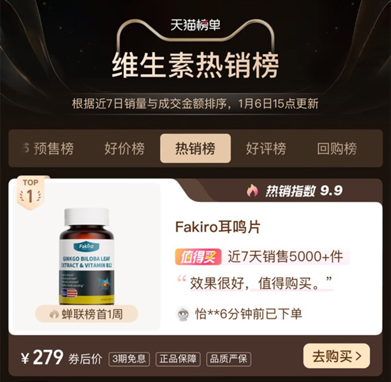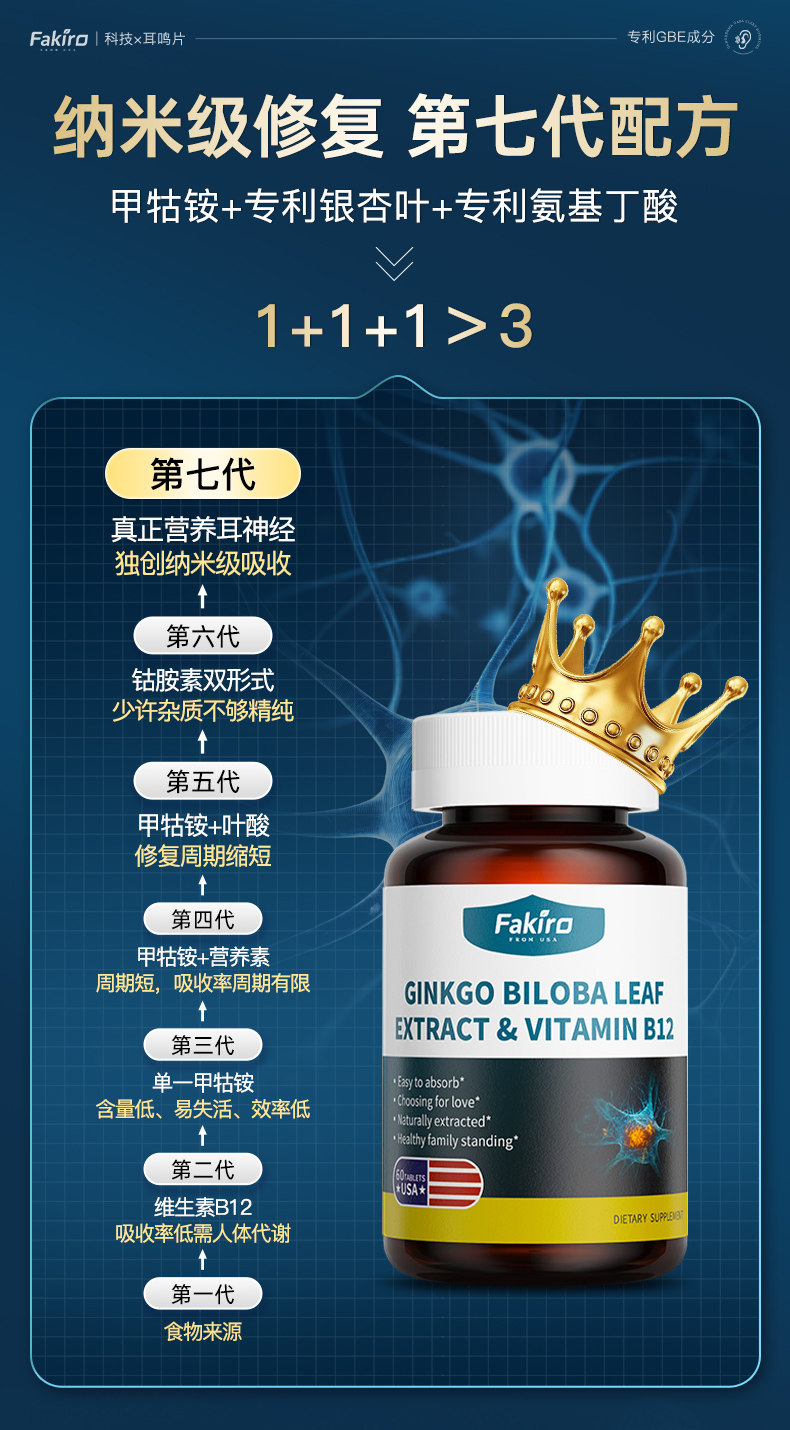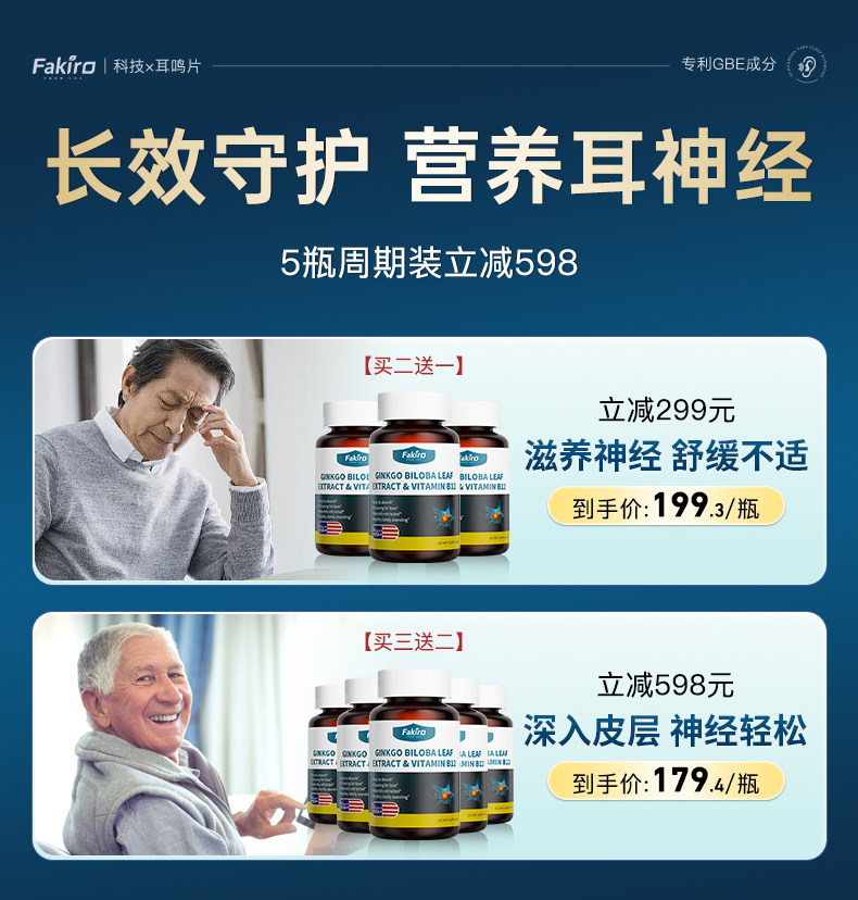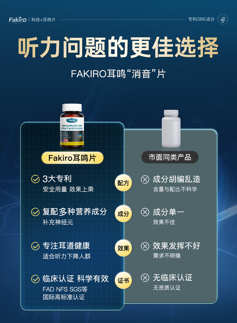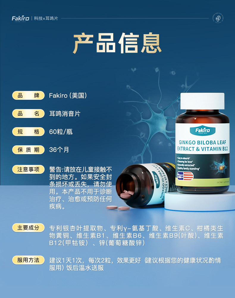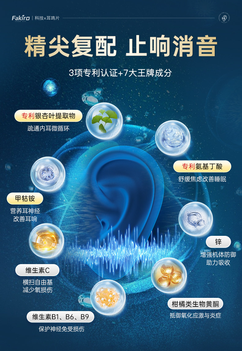 Fakiro维生素专注耳健康耳嗡嗡响神经性蝉响片黑科技专利耳损专用
