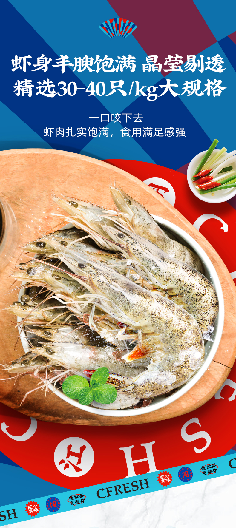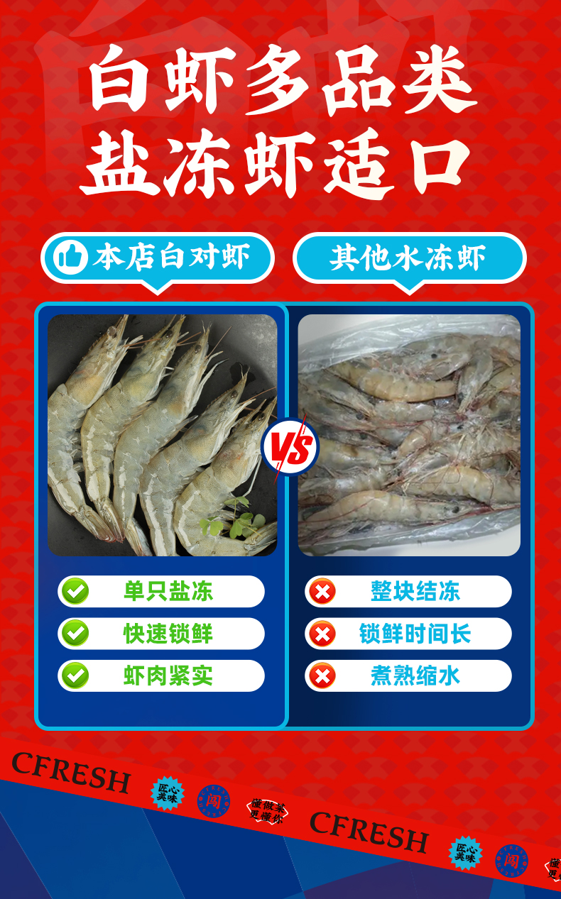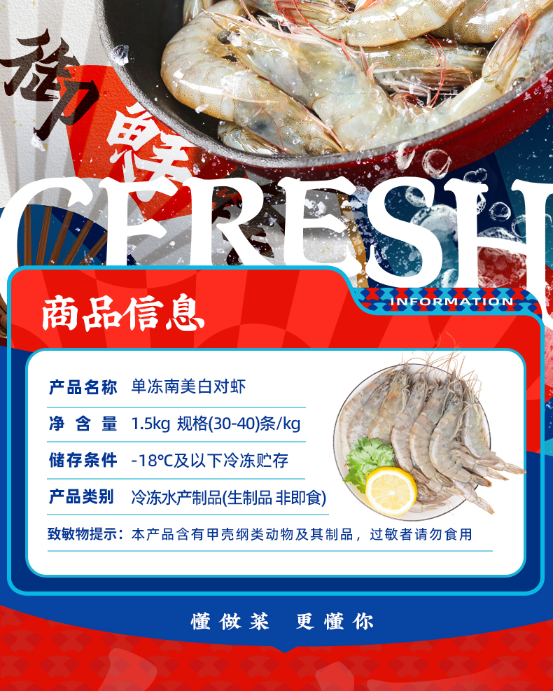 大当家专供单冻南美白对虾(30/40)1.5kg/盒 顺丰冷链包邮