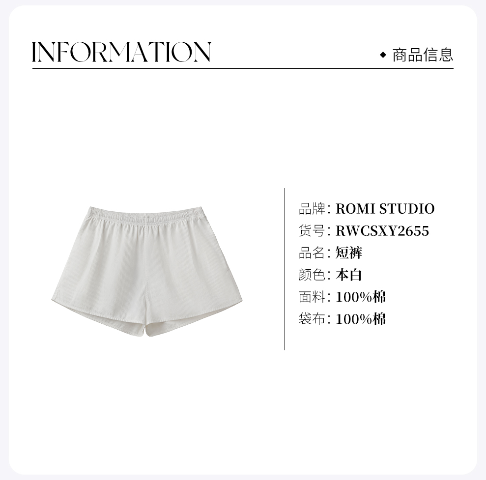 ROMI STUDIO“Clean fit”提花复古松紧腰小A版休闲短裤 RWCSXY2655(现货)