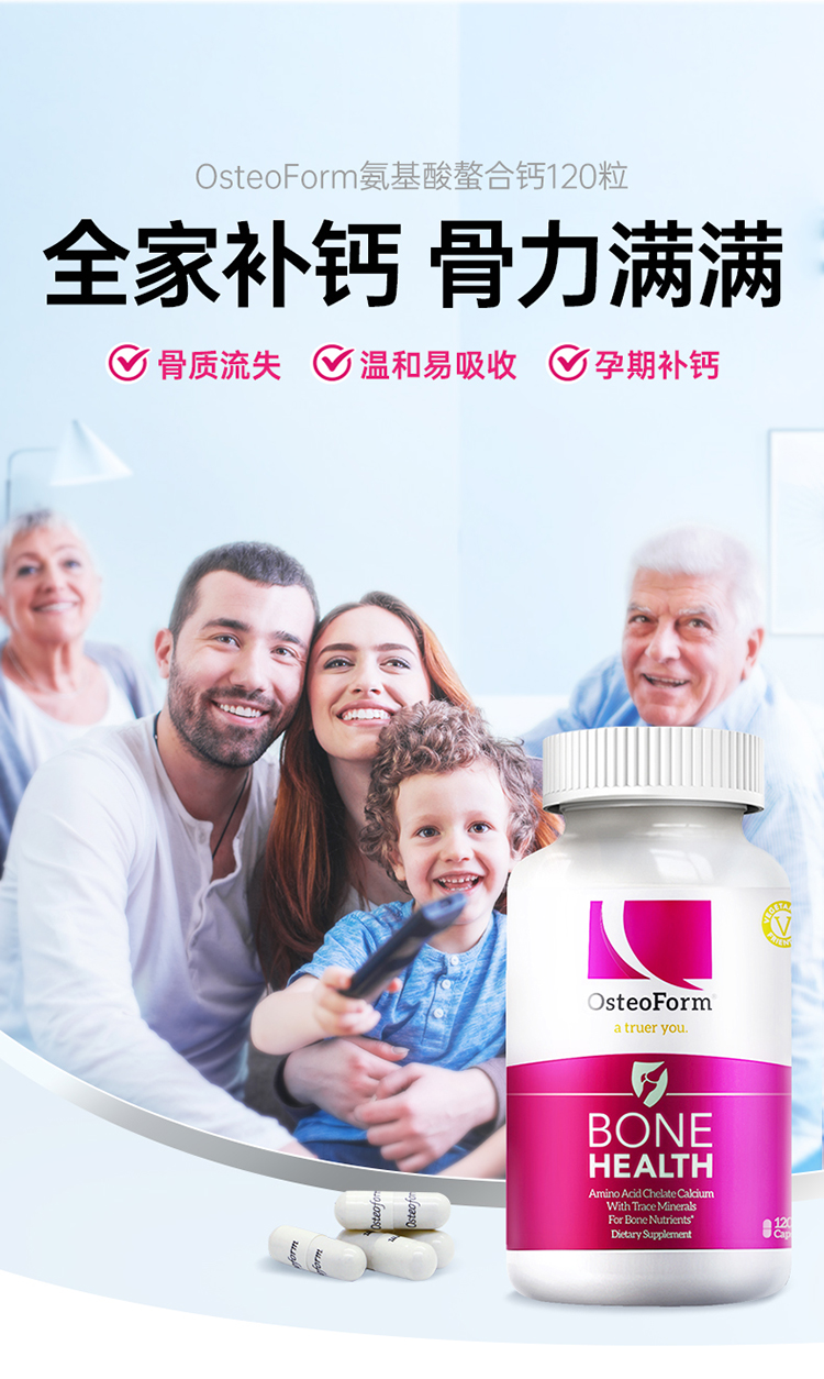 美国乐力OST氨基酸螯合钙维生素D成年全家可用120粒