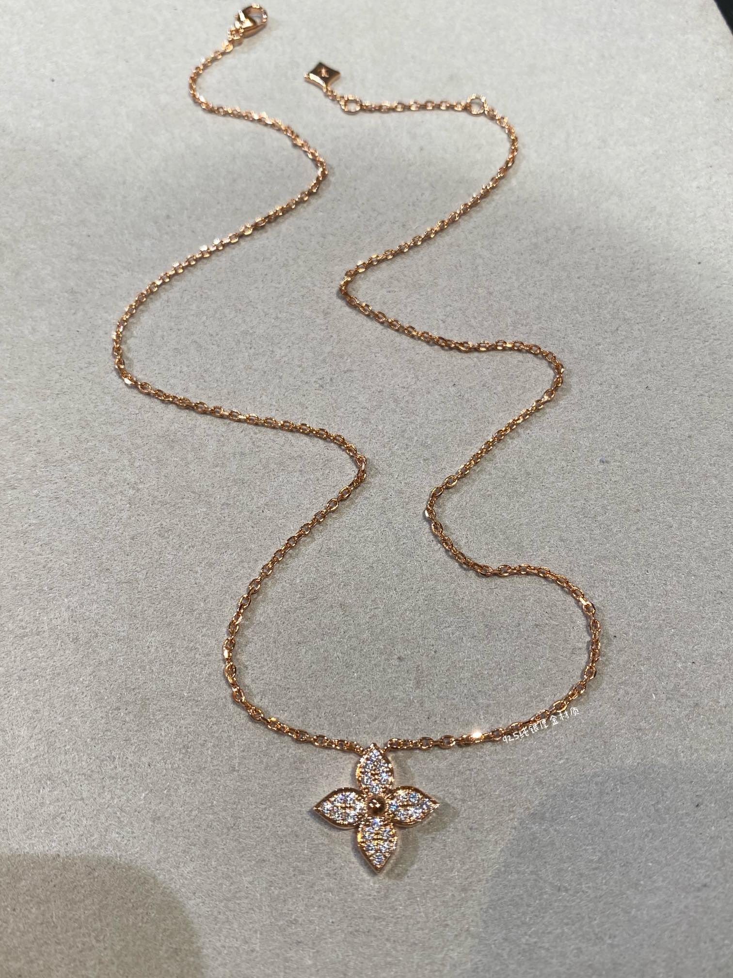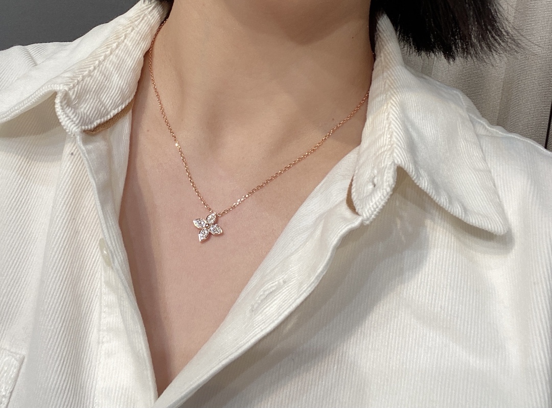 star blossom系列单花钻石项链,金质质感细腻,光泽超饱满!精美的花卉图案,单粒闪耀的24颗钻石镶于花卉之上 极致珍贵,每瓣花瓣弧度优美,线条流畅,外观时尚摩登,充满淑女气质!两瓣花瓣侧面有精雕字印,字体线条干净深邃清晰,认准品质!!