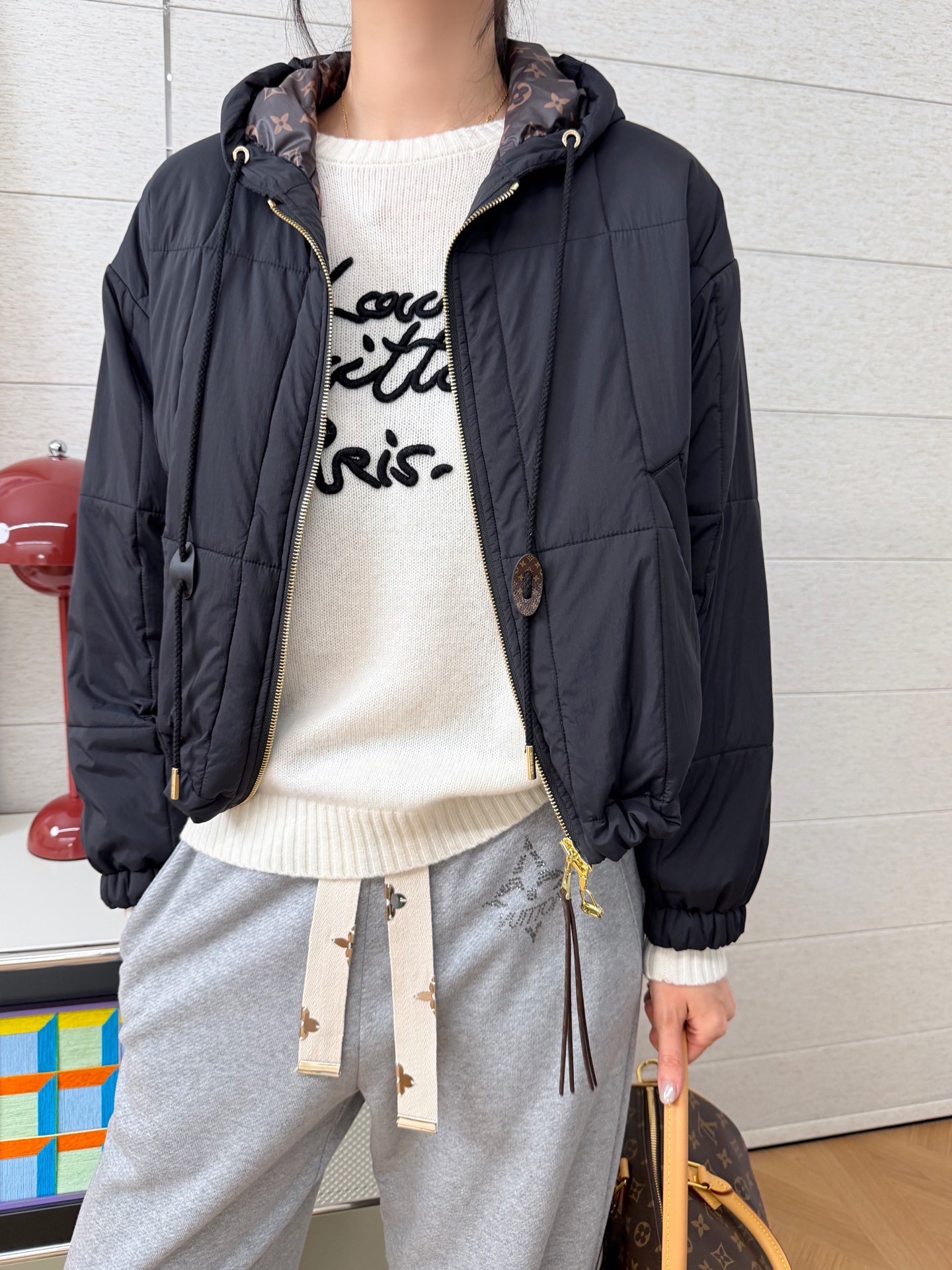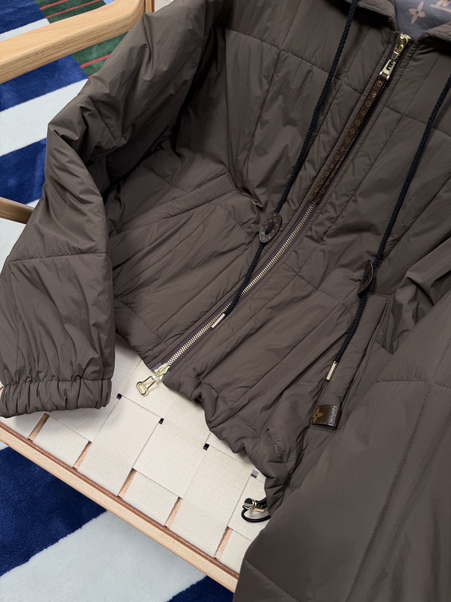 25秋冬系列 强势上新‼️‼️ 绗缝拉链外套,Monogram 图案标注口袋、拉链、抽绳和内衬,于细节之处彰显品牌经典格调,轻薄保暖,经典实穿主义,宽松版型设计,简简单单的设计,好穿不挑人 ,什么身材都能轻松驾驭,低调又好看,真的高级感爆棚💫夹棉工艺〰️品控可以说完美,冬季的暖心神器, 不挑身材~上身有种被温暖包裹的踏实感,瞬间把身材缺点都隐藏起来🉑️黑/咖两个色,码数SML