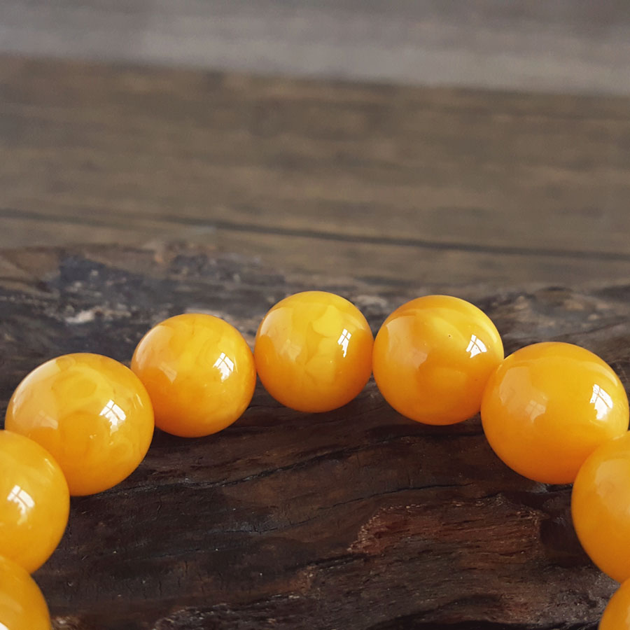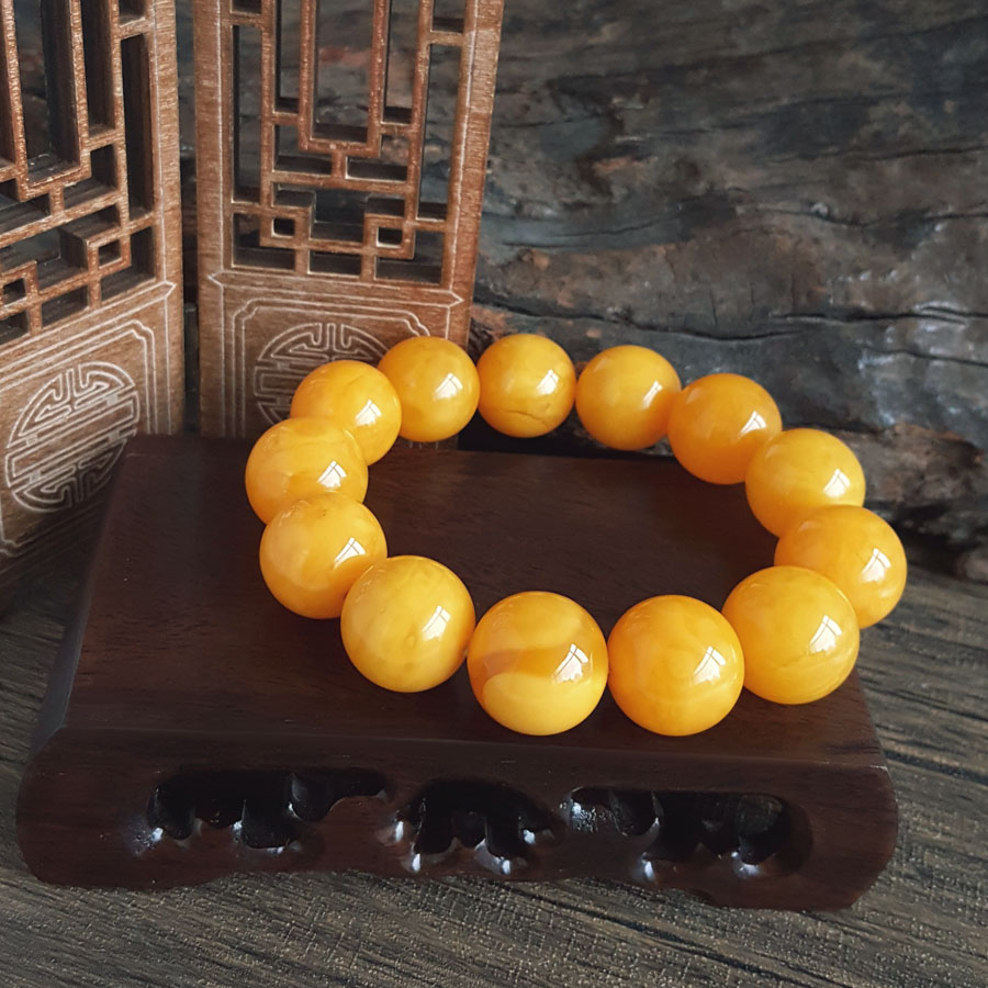 【天然正品】天然收藏级满蜜鸡油黄无杂裂约16-17MM蜜蜡圆珠手串中性111025NJM10