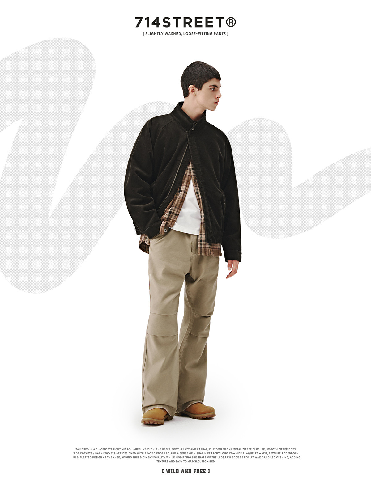 714street美式微喇伞兵裤水洗直筒裤24秋季新款长裤宽松休闲裤男